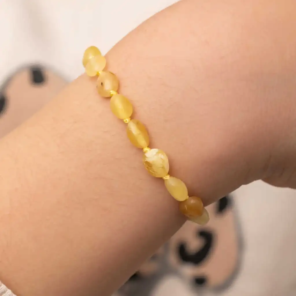 Kehribarın hem fiziksel hem metafiziksel etkisi vardır. Özellikle bebeklerin sağlığına önemli katkılar sağlayan kehribar taşı, bebeklerde sıklıkla görülen boğaz ve kulak ağrılarını dindirir. Bebeklerin en önemli sorunlarından biri olan diş çıkarma dönemindeki ağrı ve huysuzluk belirtileri de kehribar sayesinde oldukça hafiflemektedir. Aynı zamanda kehribar para taşı olarak bilinir. Bereketi arttırdığına inanılır. Kehribar bileklik olarak kullanıldığında astım, alerji, guatr, tiroid gibi şikayetlerde gerileme sağlar. Aynı zamanda kehribarın ağrı kesici etkisi bel ağrısı, baş ağrısı migren gibi şikayetlere iyi gelir. Kehribar bileklik eklem ve romatizmal ağrılarda etkilidir. Aynı zamanda negatif enerjilere karşı koruyucu etki eder. Kehribar aynı nazar boncuğu gibi etki sağlar. Ten teması ve ten ısısı ile etki eder. Kehribar bileklik bölgesel etki eder. İpek iplikten yapılmıştır, her boncuğun arası ayrı ayrı düğümlüdür. Kehribar bilekliklerin arkasında gizli plastik vidalı klips vardır. Kehribarın etkisini göstermesi kişinin bünyesine ve büyüme atağına bağlı olarak 24 ila 72 saat arasında zaman almaktadır. Bebekler için 0-5 yaş için kullanımı uygundur. Kehribar kullanıldıkça ve tena temas ettikçe etkisini gösterir. Bileklikler herkes için en gözde süsler arasındadır. Kehribar şıklığından ödün vermeyen bebeklerin severek kullanacakları bir aksesuar olacaktır. Ürünlerimizin tamamı el emeği ile üretilmiştir ve değerli taşlar nedeniyle ürün ağırlığında ± %10 sapma olabilmektedir.