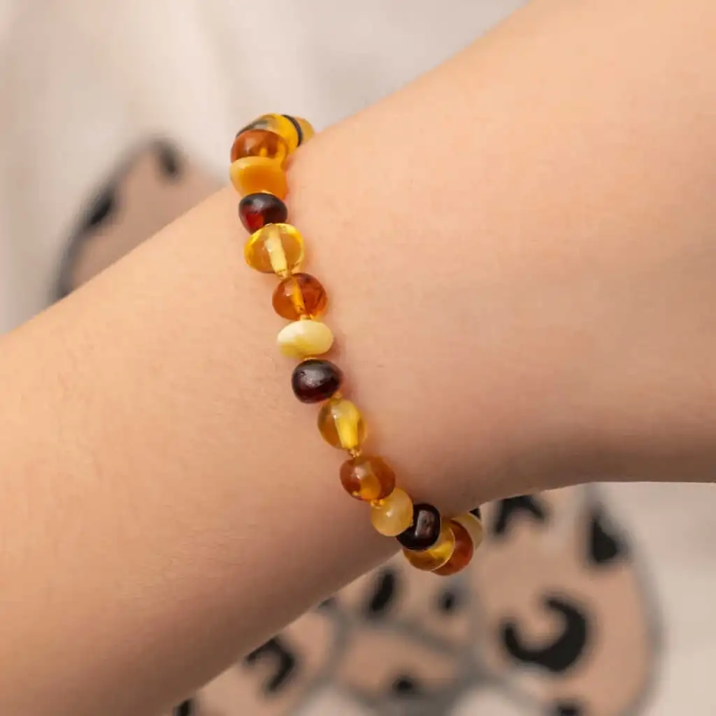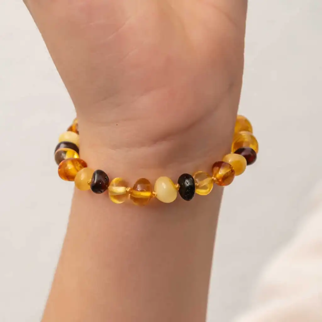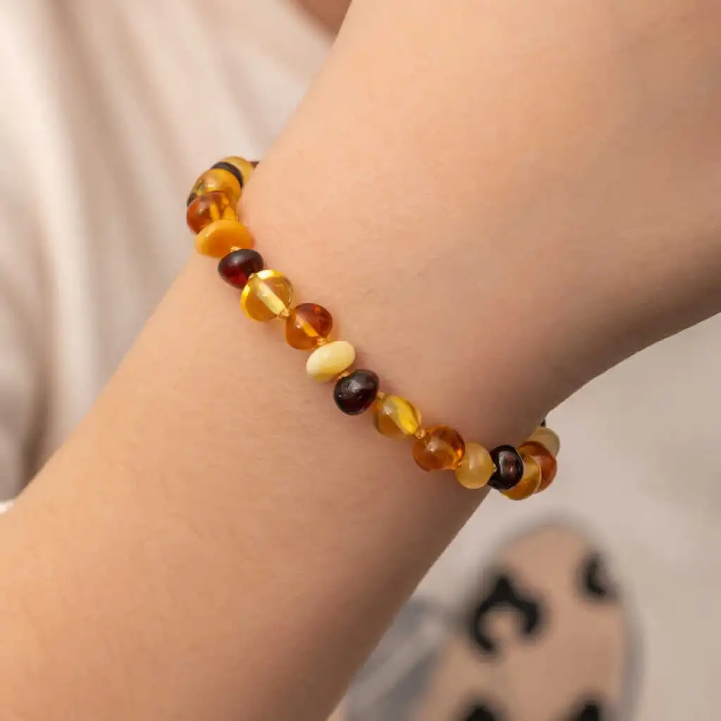 Kehribarın hem fiziksel hem metafiziksel etkisi vardır. Özellikle bebeklerin sağlığına önemli katkılar sağlayan kehribar taşı, bebeklerde sıklıkla görülen boğaz ve kulak ağrılarını dindirir. Bebeklerin en önemli sorunlarından biri olan diş çıkarma dönemindeki ağrı ve huysuzluk belirtileri de kehribar sayesinde oldukça hafiflemektedir. Aynı zamanda kehribar para taşı olarak bilinir. Bereketi arttırdığına inanılır. Kehribar bileklik olarak kullanıldığında astım, alerji, guatr, tiroid gibi şikayetlerde gerileme sağlar. Aynı zamanda kehribarın ağrı kesici etkisi bel ağrısı, baş ağrısı migren gibi şikayetlere iyi gelir. Kehribar bileklik eklem ve romatizmal ağrılarda etkilidir. Aynı zamanda negatif enerjilere karşı koruyucu etki eder. Kehribar aynı nazar boncuğu gibi etki sağlar. Ten teması ve ten ısısı ile etki eder. Kehribar bileklik bölgesel etki eder. İpek iplikten yapılmıştır, her boncuğun arası ayrı ayrı düğümlüdür. Kehribar bilekliklerin arkasında gizli plastik vidalı klips vardır. Kehribarın etkisini göstermesi kişinin bünyesine ve büyüme atağına bağlı olarak 24 ila 72 saat arasında zaman almaktadır. Bebekler için 0-5 yaş için kullanımı uygundur. Kehribar kullanıldıkça ve tena temas ettikçe etkisini gösterir. Bileklikler herkes için en gözde süsler arasındadır. Kehribar şıklığından ödün vermeyen bebeklerin severek kullanacakları bir aksesuar olacaktır. Ürünlerimizin tamamı el emeği ile üretilmiştir ve değerli taşlar nedeniyle ürün ağırlığında ± %10 sapma olabilmektedir.