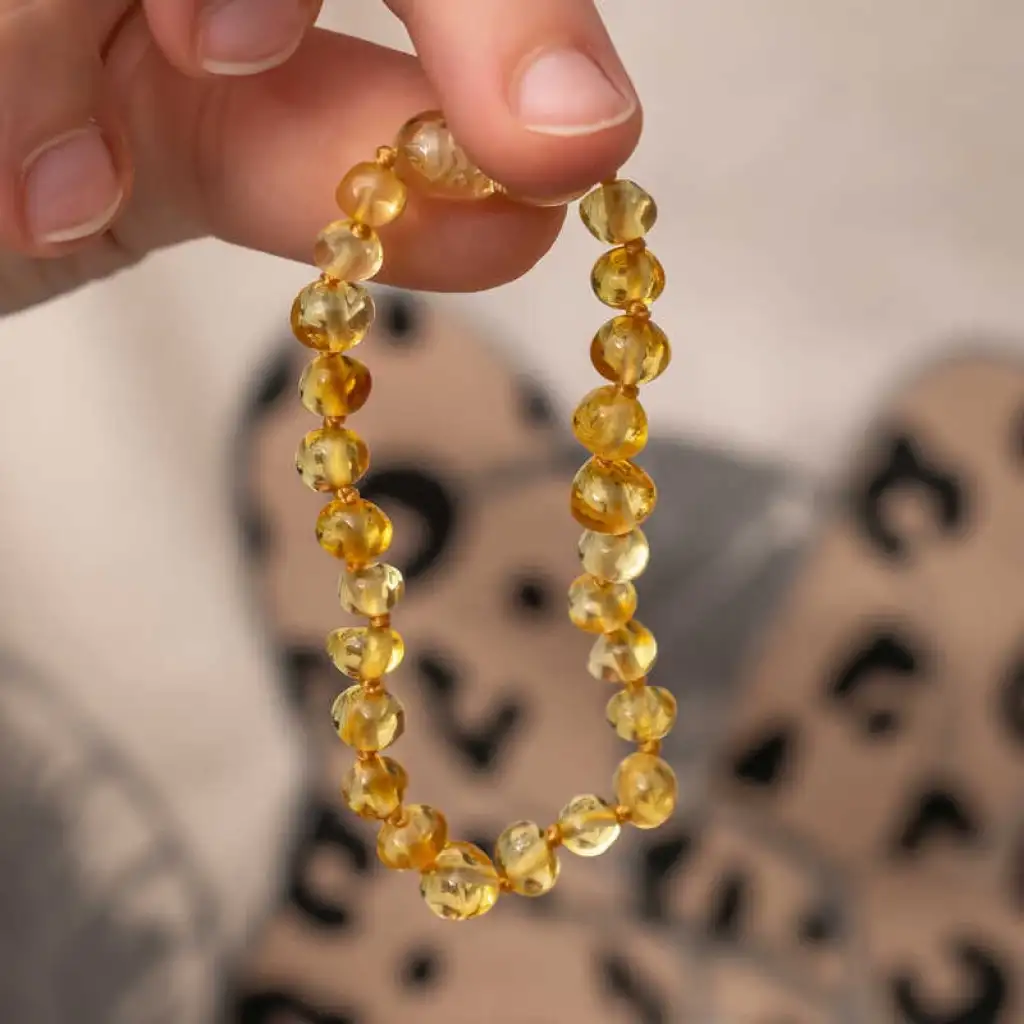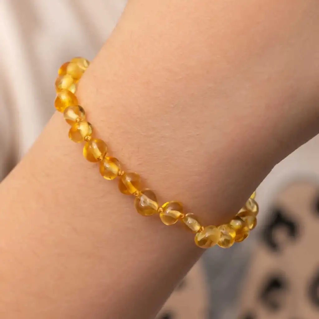 Kehribarın hem fiziksel hem metafiziksel etkisi vardır. Özellikle bebeklerin sağlığına önemli katkılar sağlayan kehribar taşı, bebeklerde sıklıkla görülen boğaz ve kulak ağrılarını dindirir. Bebeklerin en önemli sorunlarından biri olan diş çıkarma dönemindeki ağrı ve huysuzluk belirtileri de kehribar sayesinde oldukça hafiflemektedir. Aynı zamanda kehribar para taşı olarak bilinir. Bereketi arttırdığına inanılır. Kehribar bileklik olarak kullanıldığında astım, alerji, guatr, tiroid gibi şikayetlerde gerileme sağlar. Aynı zamanda kehribarın ağrı kesici etkisi bel ağrısı, baş ağrısı migren gibi şikayetlere iyi gelir. Kehribar bileklik eklem ve romatizmal ağrılarda etkilidir. Aynı zamanda negatif enerjilere karşı koruyucu etki eder. Kehribar aynı nazar boncuğu gibi etki sağlar. Ten teması ve ten ısısı ile etki eder. Kehribar bileklik bölgesel etki eder. İpek iplikten yapılmıştır, her boncuğun arası ayrı ayrı düğümlüdür. Kehribar bilekliklerin arkasında gizli plastik vidalı klips vardır. Kehribarın etkisini göstermesi kişinin bünyesine ve büyüme atağına bağlı olarak 24 ila 72 saat arasında zaman almaktadır. Bebekler için 0-5 yaş için kullanımı uygundur. Kehribar kullanıldıkça ve tena temas ettikçe etkisini gösterir. Bileklikler herkes için en gözde süsler arasındadır. Kehribar şıklığından ödün vermeyen bebeklerin severek kullanacakları bir aksesuar olacaktır. Ürünlerimizin tamamı el emeği ile üretilmiştir ve değerli taşlar nedeniyle ürün ağırlığında ± %10 sapma olabilmektedir.