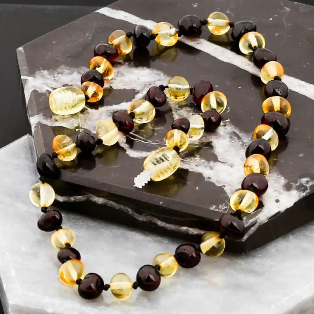 Kehribar diş kolyesi bebeklerde ortalama 4.aydan itibaren kullanılmaya başlar. Ağız suyu akıntısı, ağrı,iştahsızlık, ve uykusuzluk gibi diş çıkarma dönemine bağlı oluşan şikayetlerde çocukların diş dönemini daha rahat geçirmesini sağlar.