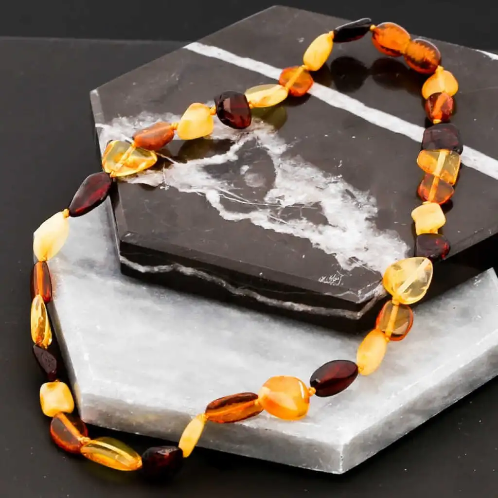 Ten teması ve ten ısısı ile etki eder. Kehribar kolye bölgesel etki eder. İpek iplikten yapılmıştır, her boncuğun arası ayrı ayrı düğümlüdür. Kehribar kolyelerin arkasında gizli plastik vidalı klips vardır. Kehribarın etkisini göstermesi kişinin bünyesine ve büyüme atağına bağlı olarak 24 ila 72 saat arasında zaman almaktadır. Kehribar kullanıldıkça ve tene temas ettikçe etkisini gösterir. Bebeklerde 0-3 yaş arası ortalama uygun standart ebat 32cm-34cmdir. Kolyeler herkes için en gözde süsler arasındadır, sanıyoruz bu süs merakı küçük yaşta başlıyor. Küçük yaşlarda süse merak salan birbirinden süslü ve şık takı modellerini sunuyoruz. Kehribar şıklığından ödün vermeyen küçüklerin severek kullanacakları bir aksesuar olacaktır. Ürünlerimizin tamamı el emeği ile üretilmiştir ve değerli taşlar nedeniyle ürün ağırlığında ± %10 sapma olabilmektedir.