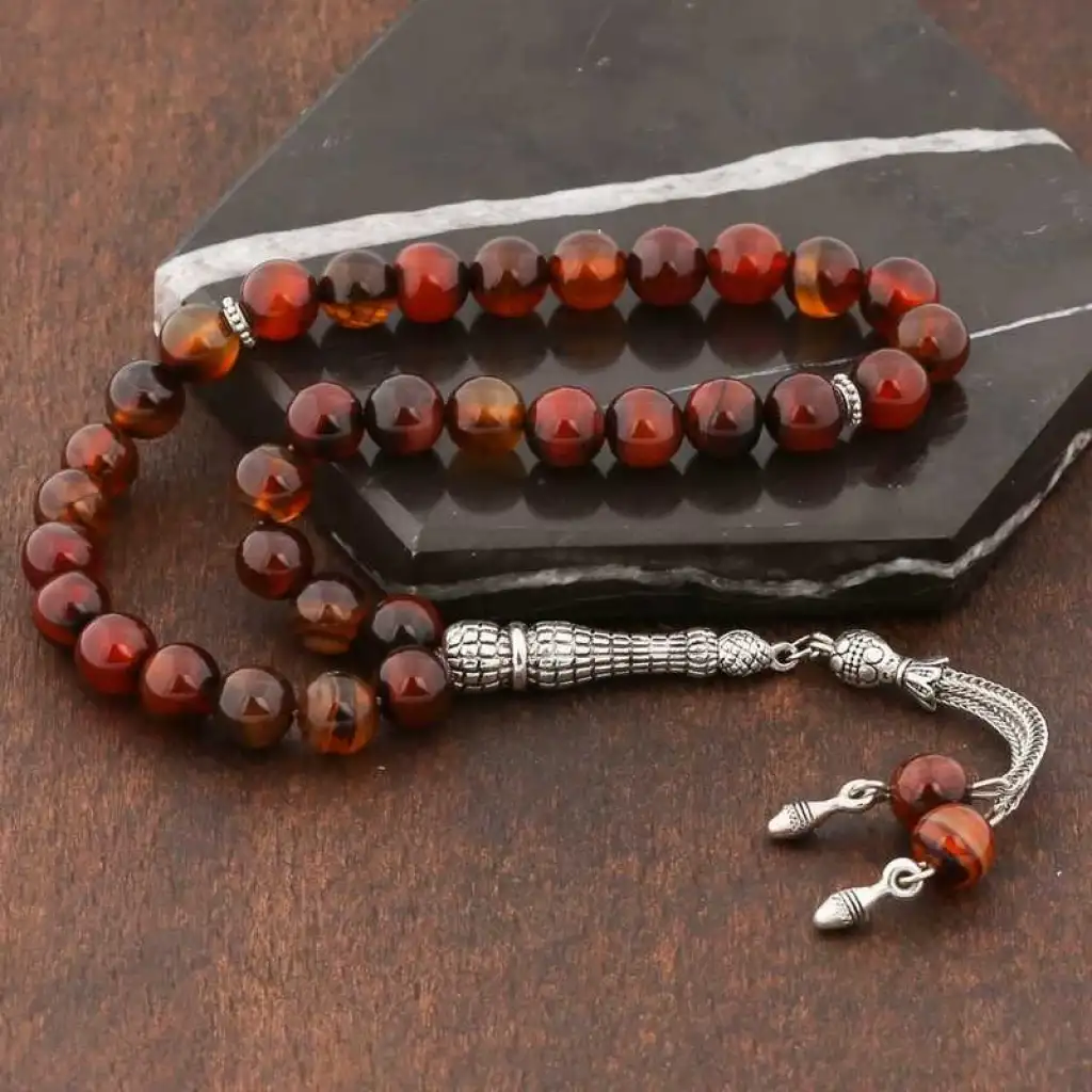 Doğaltaş ​Metal Püsküllü Akik Taşı Tesbih
