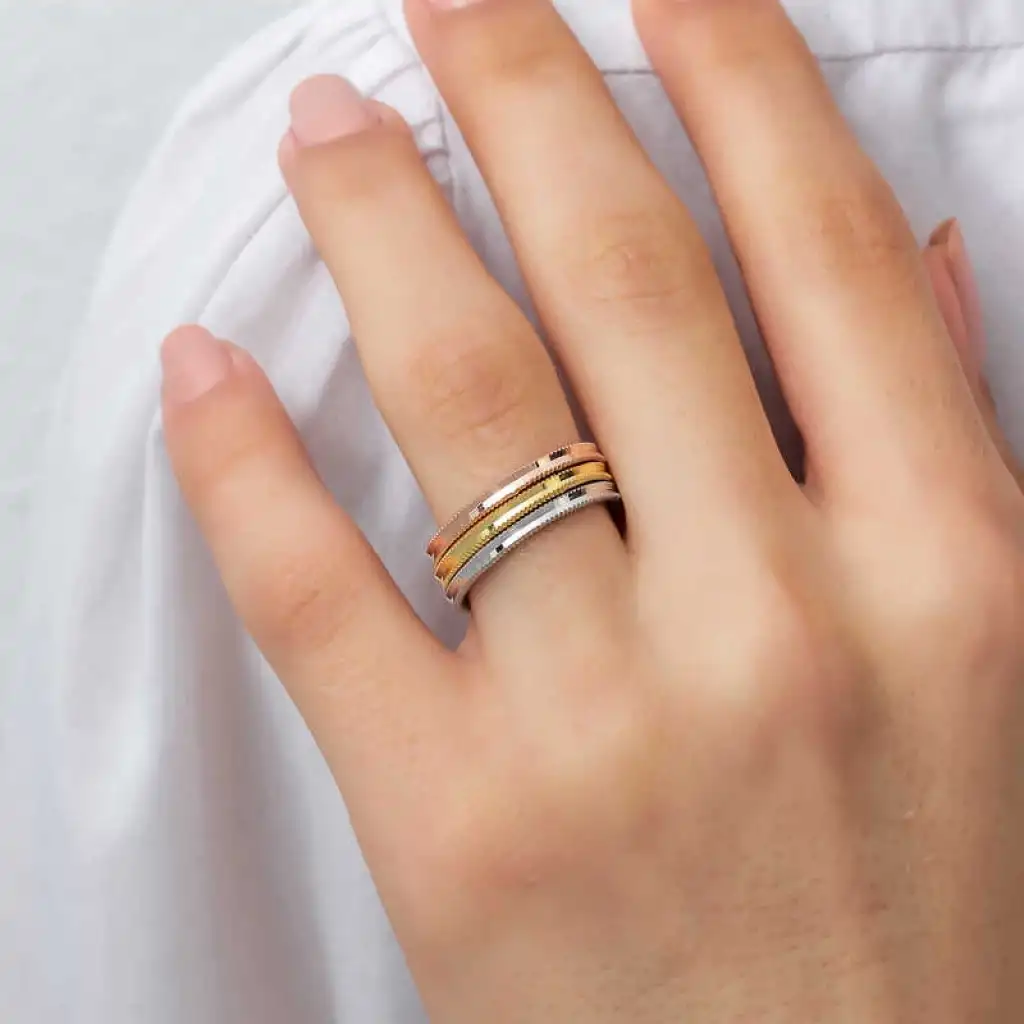 Gümüş 3 Renk Ajda Kadın Yüzük