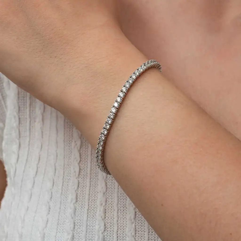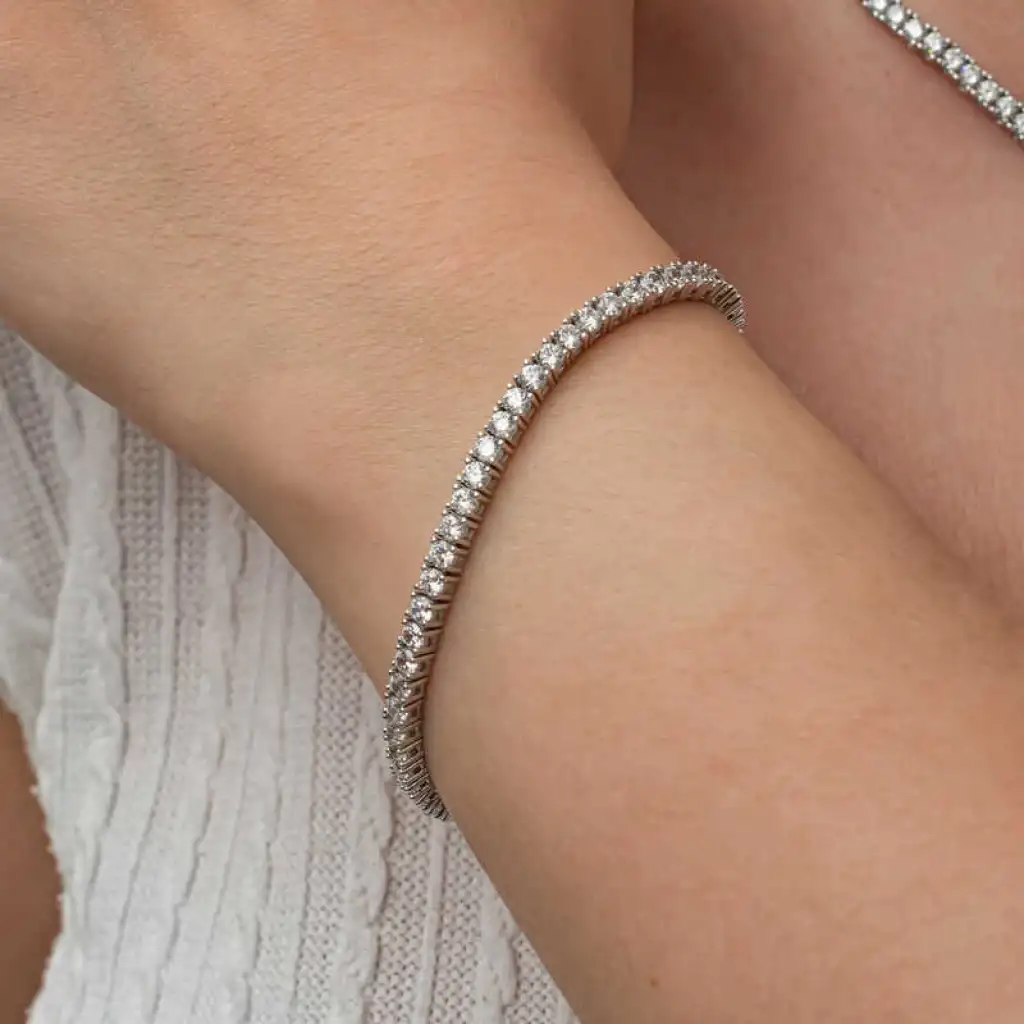 Gümüş 3.5 mm Beyaz Taşlı Su Yolu Kadın Bileklik