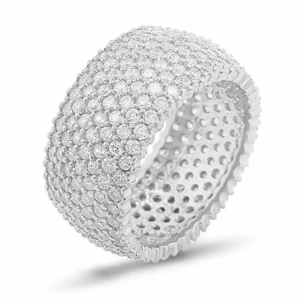 Ömür boyu bağlılık ve sonsuz sevgi için söz veren çiftlere özel bir tasarım. Yedi sıra tamtur bayan alyans yüzük modeli 925 ayar gümüşten imal edilmiştir. Gümüş üzerine rodyum kaplama yapılmıştır. Rodyum kaplama yapılan gümüş bayan yüzük ve alyans modelleri parlaklığını uzun süre muhafaza eder ve oksitlenmesi gecikir. Yüzük üzerinde bulunan beyaz taşlar zirkondur. Bu yedi sıra tamtur bayan alyans yüzük modeli diğer bayan yüzüklerinde olduğu gibi tamamen el emeği ile üretilmiştir. Gümüş ve değerli taşlar nedeniyle belirtilen ortalama ürün ağırlığında ± %10 sapma olabilmektedir.