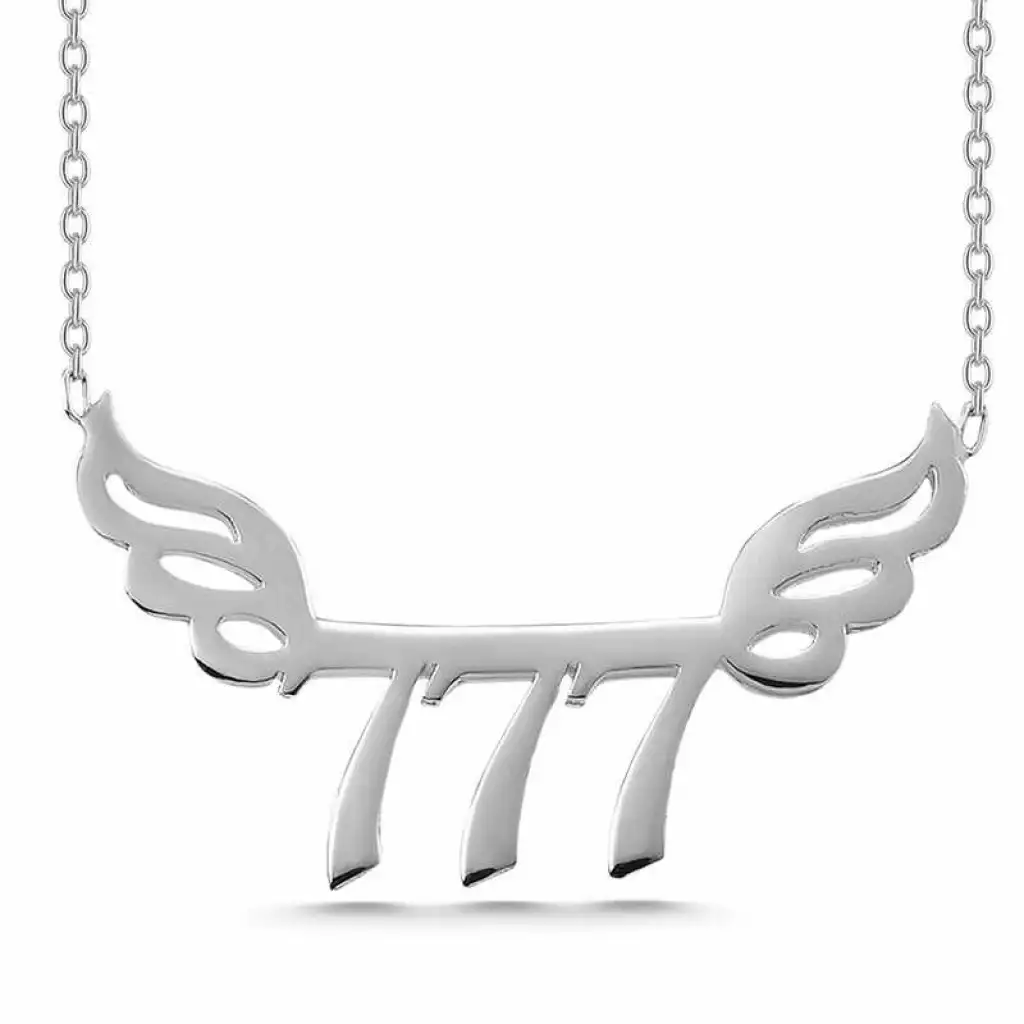 777 sayısının şans ve mutluluk getirme anlamına sahip olduğuna inanılmaktadır. Bunun yanında melek sayısı anlamına gelebilmektedir. Sevdiğiniz kadınlara özel günlerde sahip olduğu bu manevi anlam gözetilerek hediye edilebilecek takı tasarımları arasında yer almaktadır. Bu şık kolye; doğum günü hediyesi, sevgililer günü hediyesi veya annelere hediye olarak özel günlerde tercih edilebilecek mükemmel bir seçenektir. Kolye, 925 ayar gümüşten imal edilmiştir. Gümüş üzerine rodyum kaplama yapılmıştır. Rodyum kaplama yapılan gümüş kadın kolye modelleri parlaklığını uzun süre muhafaza eder, oksitlenmesi gecikir. Zincir boyu ortalama 45 cm'dir. Tüm gümüş kadın kolye modellerinde olduğu gibi bu gümüş 777 melek sayısı kadın kolye de tamamı el emeği ile üretilmiştir. Gümüş ve değerli taşlar nedeniyle belirtilen ortalama ürün ağırlığında ± %10 sapma olabilmektedir.