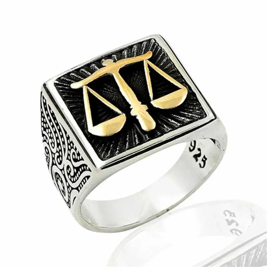 Gümüş üzerindeki adalet terazisi erkek yüzük modeli günün her anında kullanabileceğiniz şık bir aksesuardır. Bu yüzüğü; kendinize ya da sevdiklerinize doğum gününde, babalar gününde ya da özel günlerde hediye edebilirsiniz. Adalet terazisi erkek yüzük modeli 925 ayar gümüşten imal edilmiştir. Gümüş üzerine oksit kaplama yapılmıştır. Oksit kaplama yapılan gümüş erkek yüzük modelleri parlaklığını uzun süre muhafaza eder. Tüm erkek yüzüklerde olduğu gibi gümüş adalet terazisi erkek yüzük modeli de el emeği ile üretilmiştir. Gümüş ve değerli taşlar nedeniyle belirtilen ortalama ürün ağırlığında ± %10 sapma olabilmektedir.