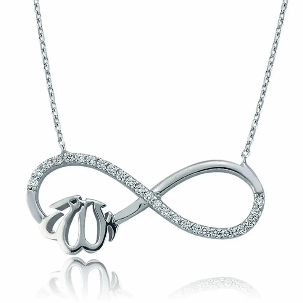 Gümüş Allah Yazılı Sonsuzluk Bayan Kolye