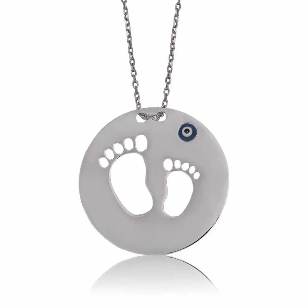 Gümüş Anne Bebek Ayak İzi Bayan Kolye