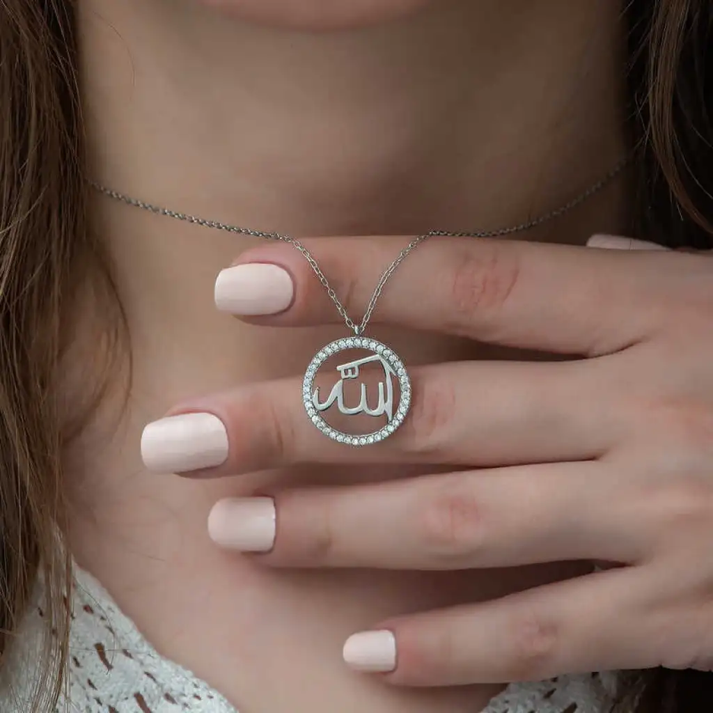 Gümüş Arapça Allah Yazılı Bayan Kolye