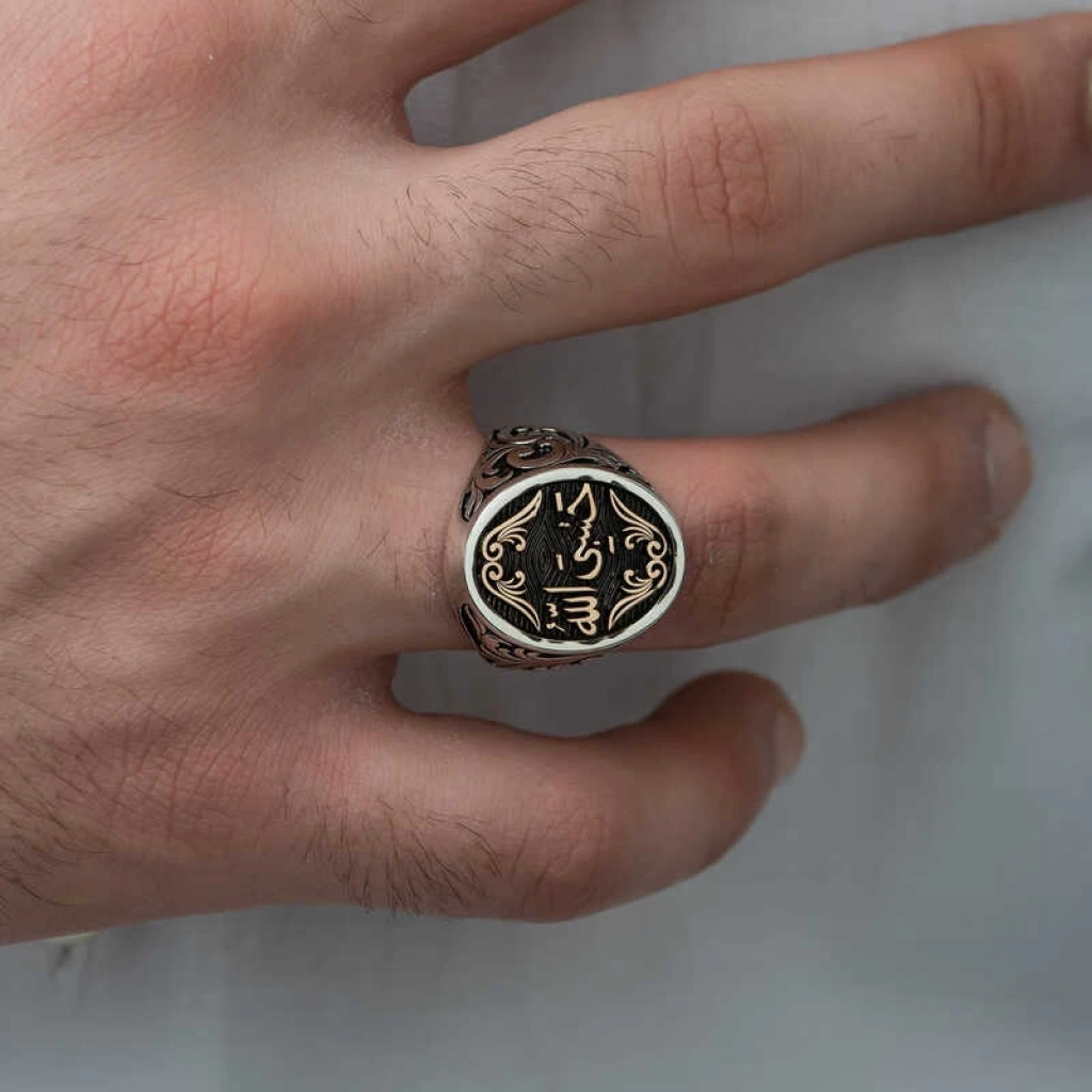 Gümüş Arapça Hasbiyallah Yazılı Erkek Yüzük