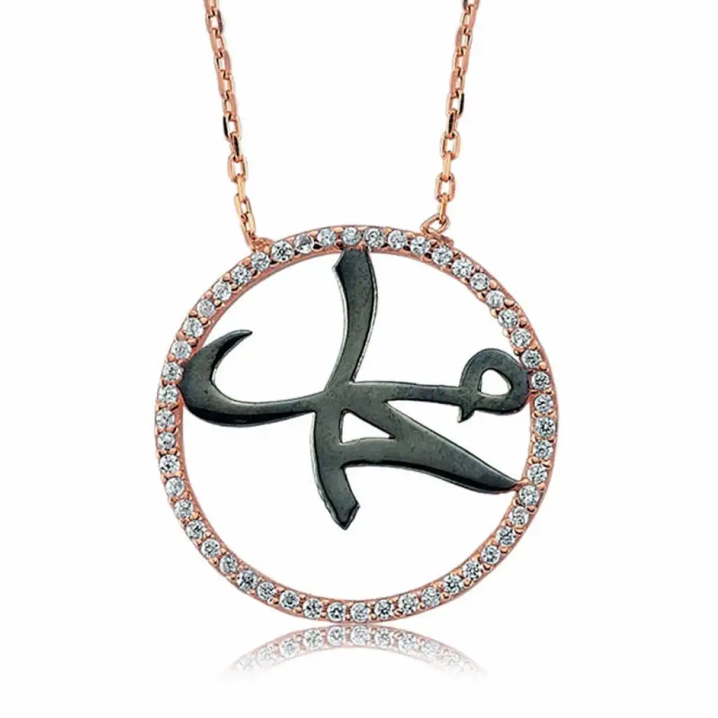 İslam Peygamberi Hz. Muhammed'in isminin arapça yazılı olduğu kolye ile sevdiklerinize hem anlamlı hem de güzel bir hediye verebilirsiniz. Böylelikle sevdiklerinizi dini ve derin bir anlama sahip gümüş kolye ile sevindirebilirsiniz. Bu şık kolye modeli 925 ayar gümüşten imal edilmiştir. Gümüş üzerine rose altın kaplama yapılmıştır. Rose altın kaplama yapılan gümüş kolye modelleri parlaklığını uzun süre muhafaza eder, oksitlenmesi gecikir. Üzerinde bulunan taşlar zirkondur. Zincir boyu ortalama 45 cm'dir. Ürünlerimizin tamamı el emeği ile üretilmiştir. Gümüş ve değerli taşlar nedeniyle belirtilen ortalama ürün ağırlığında ± %10 sapma olabilmektedir.