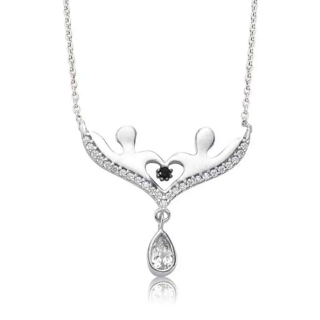 Aşka ve sevgiye bütün saflığıyla kucak açmaya, bir ömür aynı yolda beraber varolmaya ne dersiniz? Cıvıl cıvıl aşk kokulu bu gümüş kolye sizler için tasarlandı... Bu zariflikten yola çıkılarak tasarlanan bu şık kolye; doğum günü hediyesi, sevgililer günü veya veya annelere hediye olarak özel günlerde tercih edilebilecek mükemmel bir seçenektir. Kolye 925 ayar gümüşten üretilmiştir. Gümüş kolyenin zincir uzunluğu 45 cm’dir. Gümüş üzerine rodyum kaplama yapılmıştır. Rodyum kaplama yapılan bayan kolyeler parlaklığını uzun süre muhafaza eder, oksitlenmeyi geciktirir. Tüm gümüş kolyelerde olduğu gibi gümüş aşıklar bayan kolye de el emeği ile üretilmiştir. Üzerinde bulunan taşlar zirkondur. Gümüş ve değerli taşlar nedeniyle belirtilen ürün ağırlığında ± %10 sapma olabilmektedir.