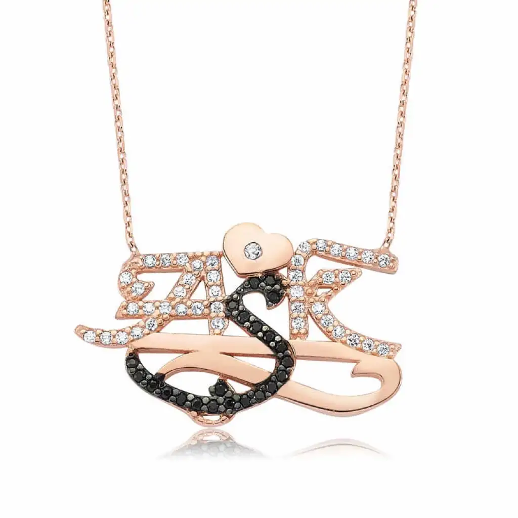 Sevdiklerinize sonsuz aşkı ifade etmenin en güzel en anlamlı yollarından biri ona gümüş aşk yazılı bayan kolye hediye etmektir. Sevdiklerinize hediye edeceğiniz bu özel tasarım gümüş aşk bayan kolye 925 ayar gümüşten imal edilmiştir. Gümüş üzerine rose altın kaplama yapılmıştır. Rose altın kaplama yapılan bayan kolye modelleri parlaklığını uzun süre muhafaza eder ve oksitlenmesi gecikir. Üzerinde bulunan tüm taşlar zirkondur. Gümüş olan zincirinin boyu ortalama 45cm'dir. Tüm bayan kolye modellerinde olduğu gibi aşk bayan kolye modeli de el emeği ile üretilmiştir. Gümüş ve değerli taşlar nedeniyle belirtilen ortalama ürün ağırlığında ± %10 sapma olabilmektedir.