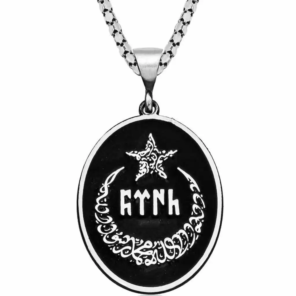 Gümüş Ay Yıldız İçerisi Göktürkçe Türk Yazılı Kolye
