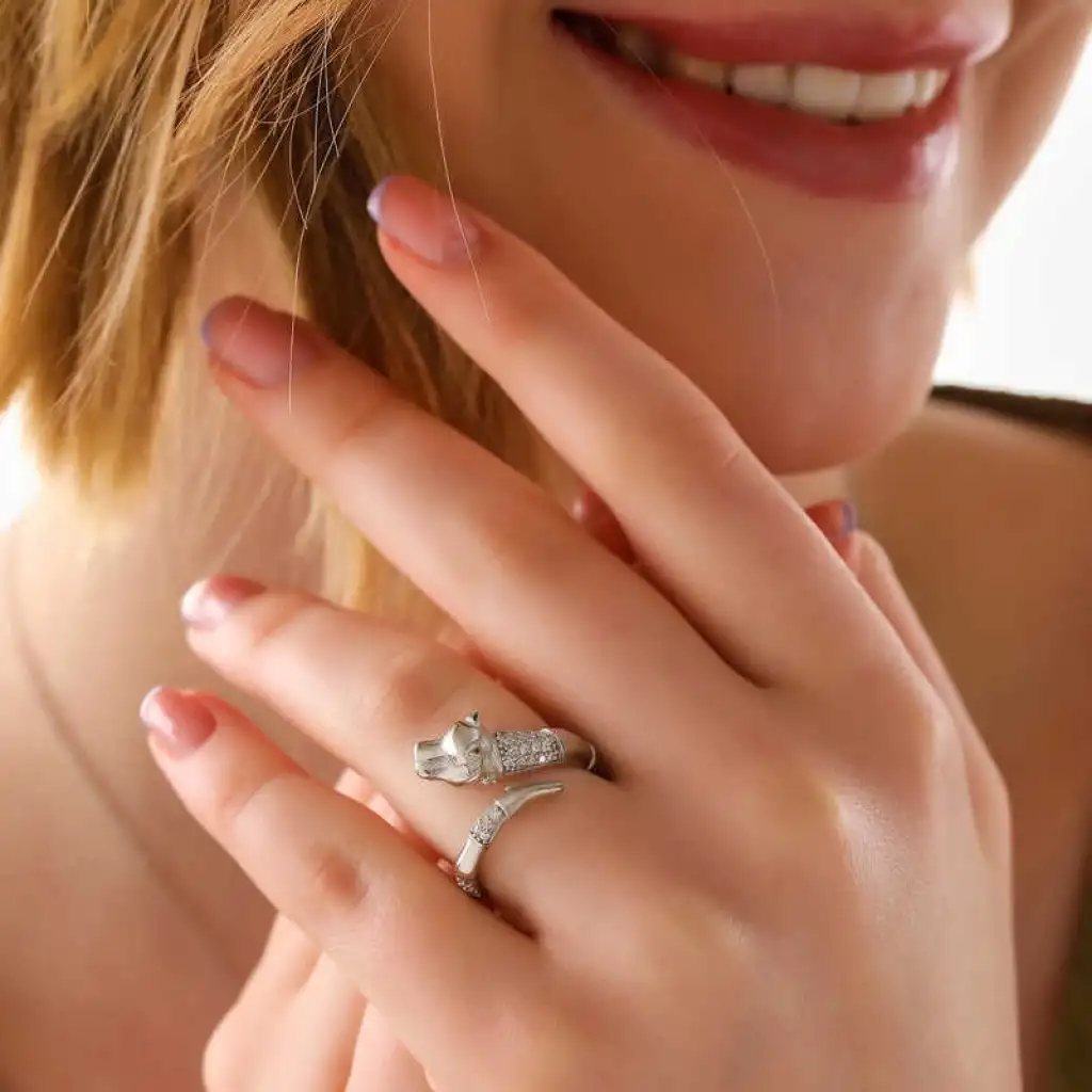 Gümüş Ayarlanabilen Kaplan Figürlü Kadın Yüzük