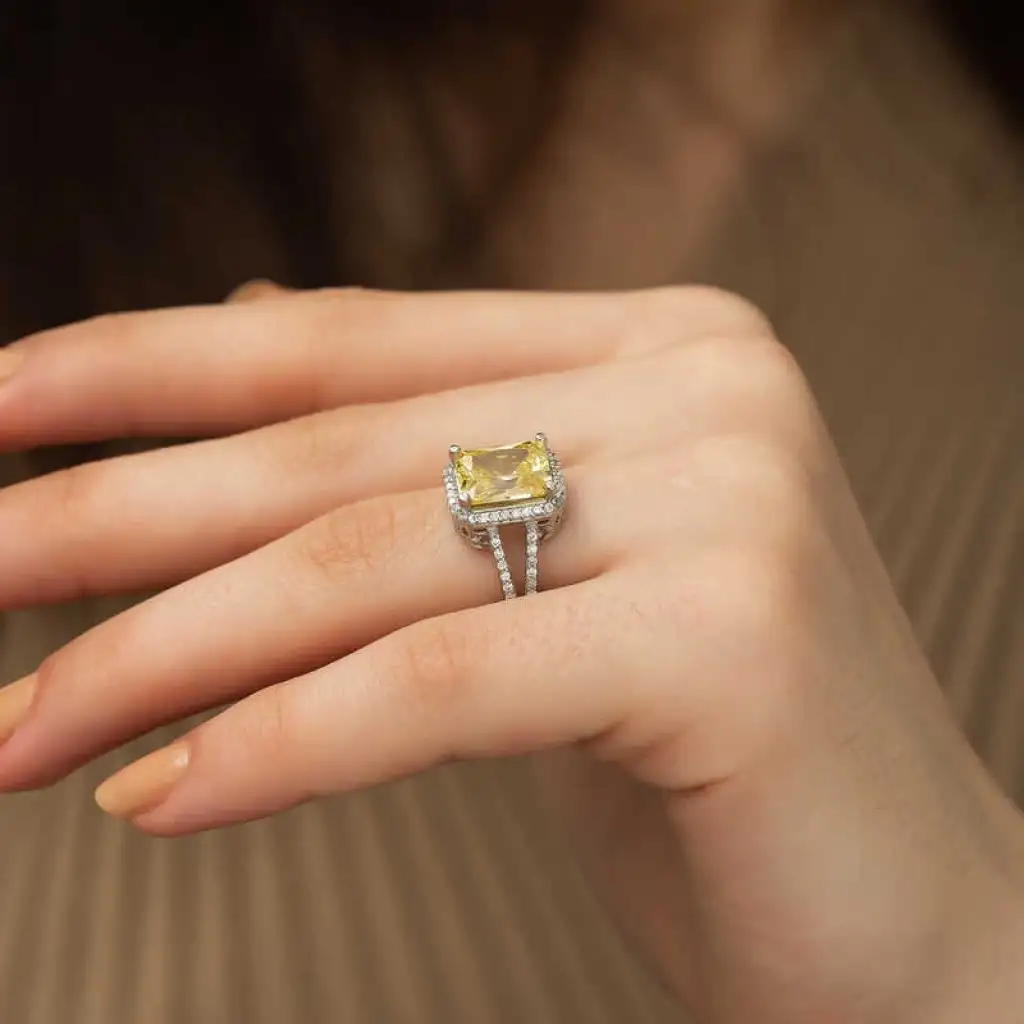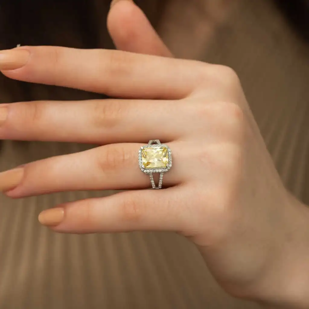 Gümüş Sarı Baget Kare Bayan Yüzük