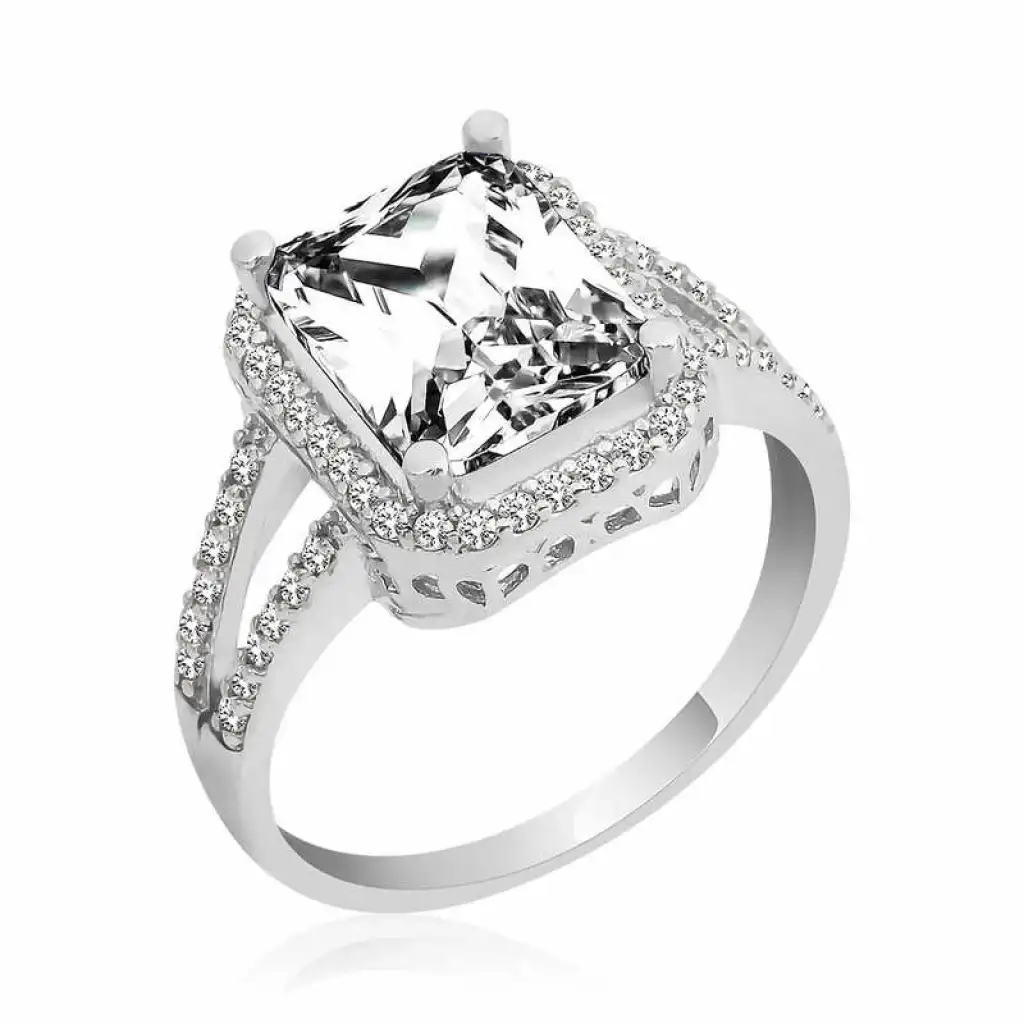Gümüş Beyaz Baget Kare Bayan Yüzük