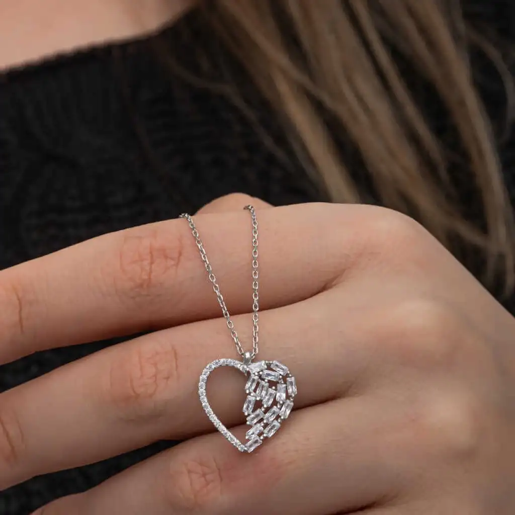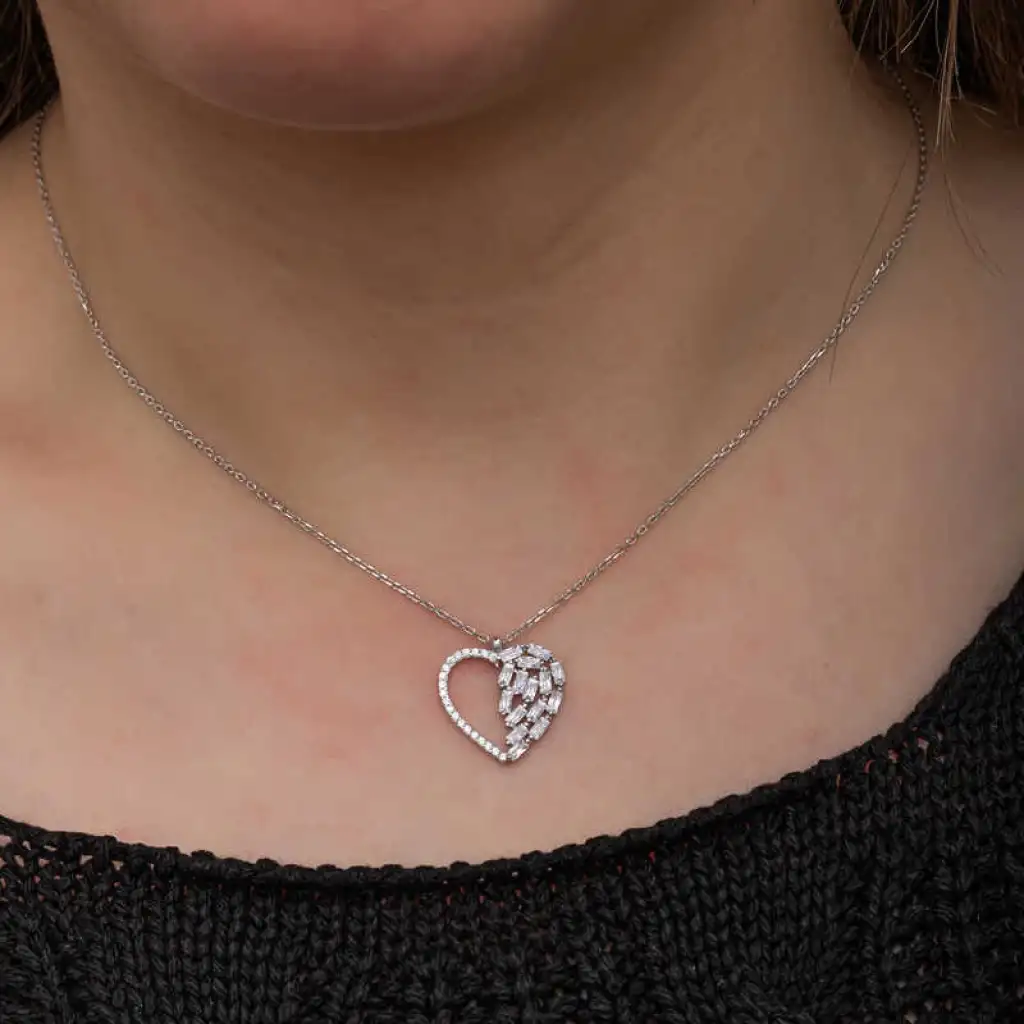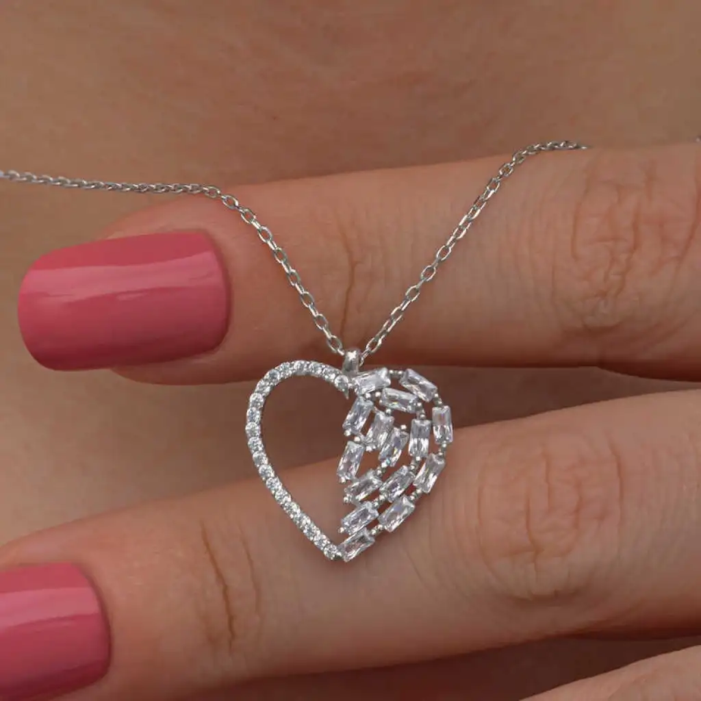 Gümüş Baget Taşlı Kalp Kadın Kolye