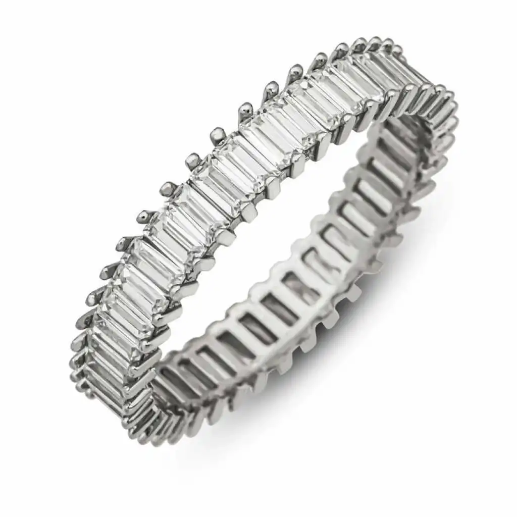 Gümüş Baget Taşlı Rodyum Tamtur Kadın Yüzük
