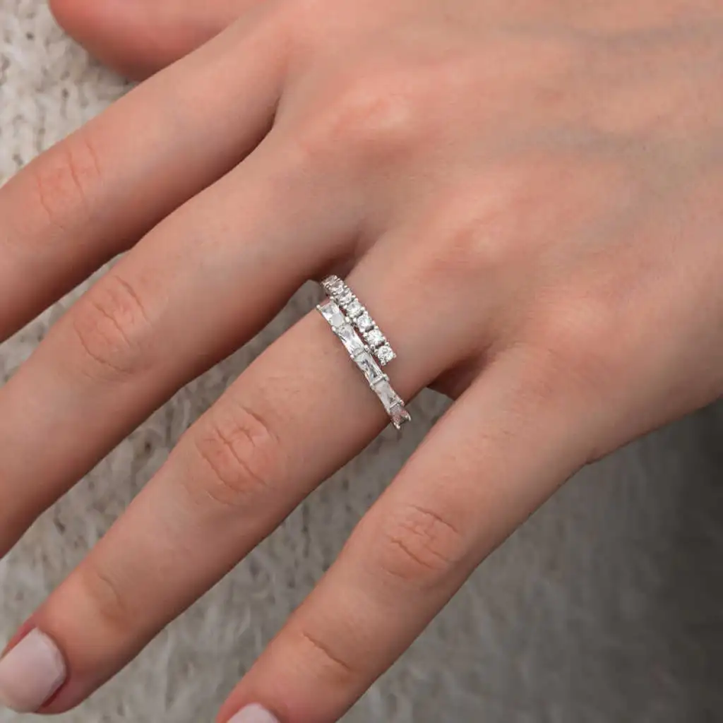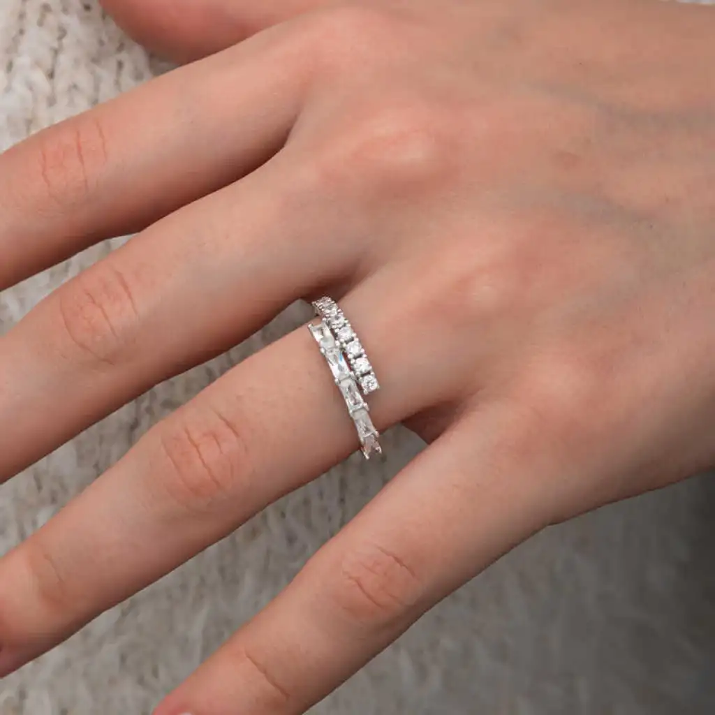 Gümüş Baget Taşlı Yarımtur Kadın Yüzük