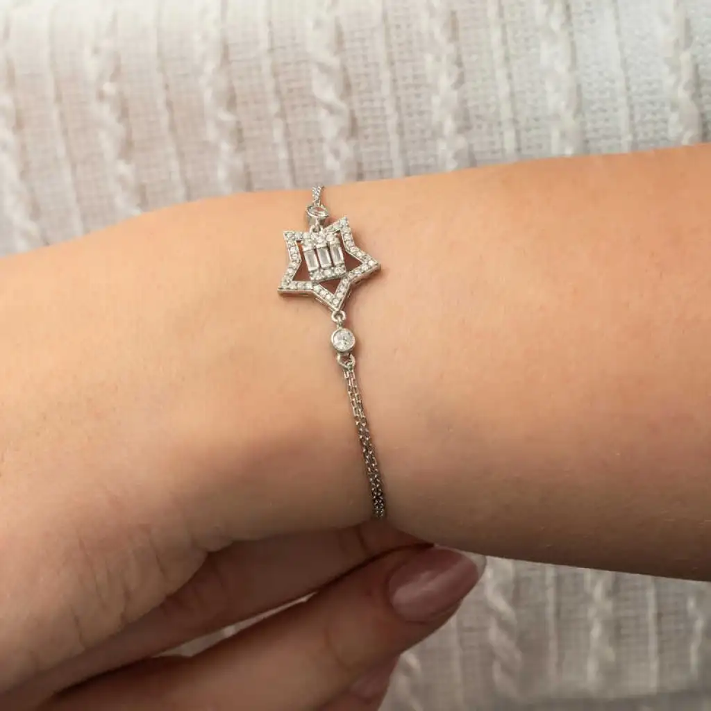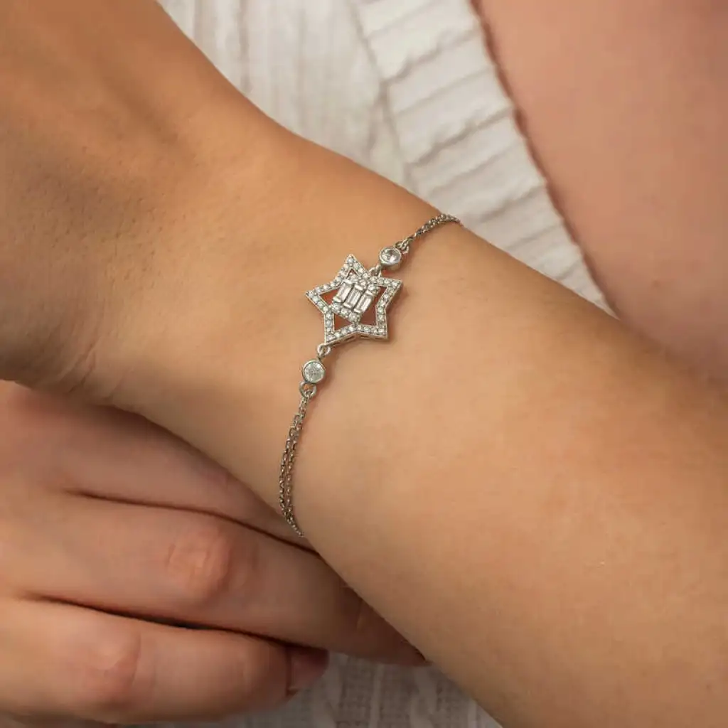 Gümüş Baget Taşlı Yıldız Kadın Bileklik
