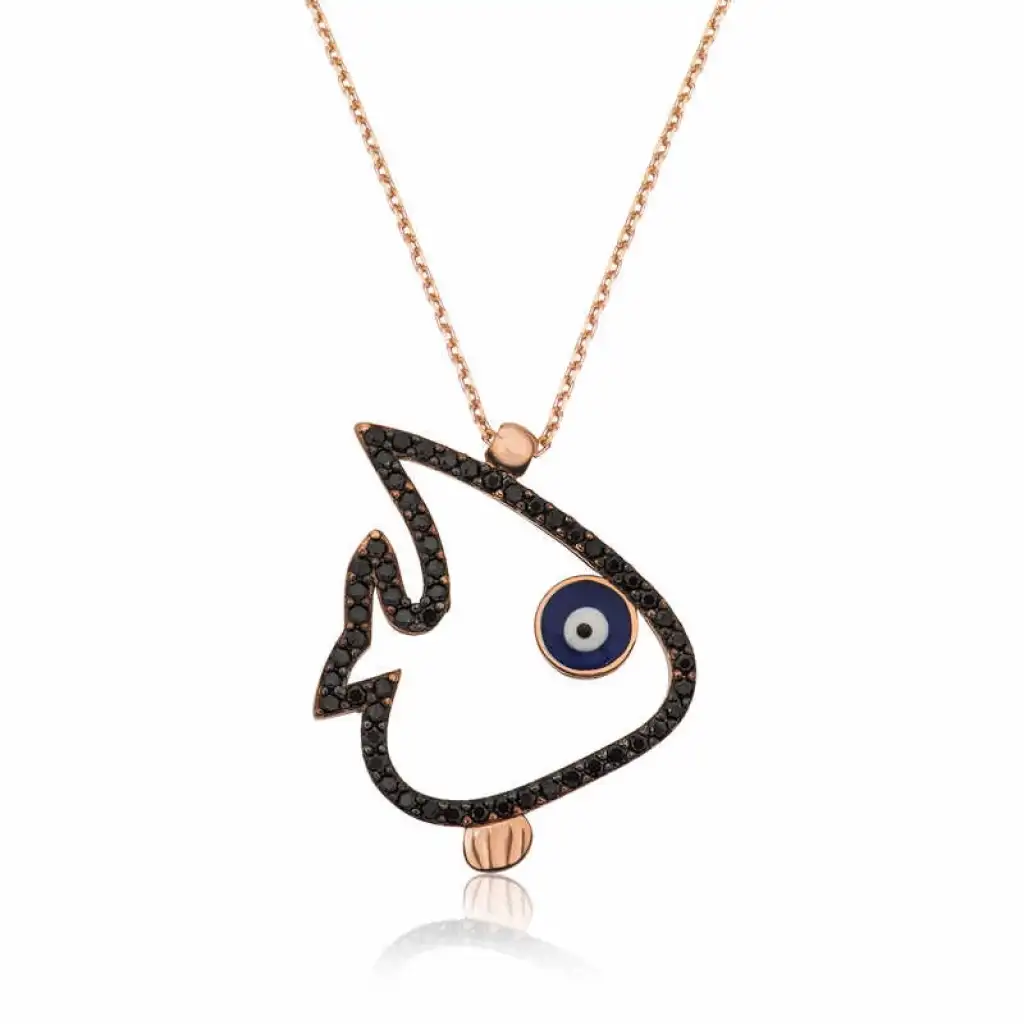 Bir şans ve bereket figürü olan balık sembolü pek çok kültürde şans simgesi olarakda eskiden beri kullanılmaktadır. Balık figürü pek çok kültürde ve ezoterik öğretide karşımıza çıkan giz ve gizemcilikle ilgili önemli bir sembolüdür. Balık’a atfedilen en belirgin anlamlar doğum, yaradılış ve Ay ile ilgilidir. Balık sembolü, spiritüel bilgelik, doğurganlık ve yeniden hayat bulma ile ilgidir. Balık kendi doğasına ait pek çok önemli yönü yansıttığı bir dizi anlamlar içermektedir. Suyun içinde her yöne özgürce hareket etmeleri, akıntıya karşı yüzmeleri, çokça doğurmaları Feng Shui’de, bolluk bereketin, refahın ve zenginliğin sembolüdür. Çin ve Japonya’da iş zekâsını ve başarıyı temsil eden sembol, iyi talihinde simgesidir. Zerafeti seven bayanlara özel minimal tarzda hazırlanan bu kolyenin, size bol şans getirmesini dileriz. Balık kolye modeli 925 ayar gümüşten imal edilmiştir. Ürünlerimizin tamamında olduğu gibi gümüş balık bayan kolye modeli de el emeği ile üretilmiştir. Gümüş ve değerli taşlar nedeniyle belirtilen ortalama ürün ağırlığında ± %10 sapma olabilmektedir.