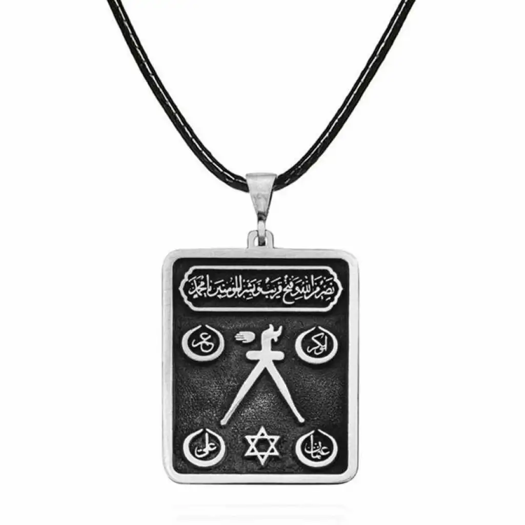 Barbaros sancağının; Alt kısımda göbekte zülfikar ve bunun dört köşesinde ise islam'ın temsili olan hilal şekillerinin içerisinde sırasıyla sağ üst, sol üst, sağ alt ve sol altta ebu bekir, ömer, osman, ali isimleri yazmaktadır. kılıcın kabza kısmına yakın duran beyaz el ise "pençe-i ali aba"dır. Bu şık kolye 925 ayar gümüşten imal edilmiştir. Gümüş üzerine oksit kaplama yapılmıştır. Oksit kaplama yapılan kolyeler otantik bir görünüme sahip olur. Tüm kolyelerde olduğu gibi gümüş Barbaros Hayrettin paşa sancağı işlemeli kolye de el emeği ile üretilmiştir. 55 cm kilitli kauçuk zincir İle birlikte gönderilmektedir. Gümüş ve değerli taşlar nedeniyle belirtilen ortalama ürün ağırlığında ± %10 sapma olabilmektedir.