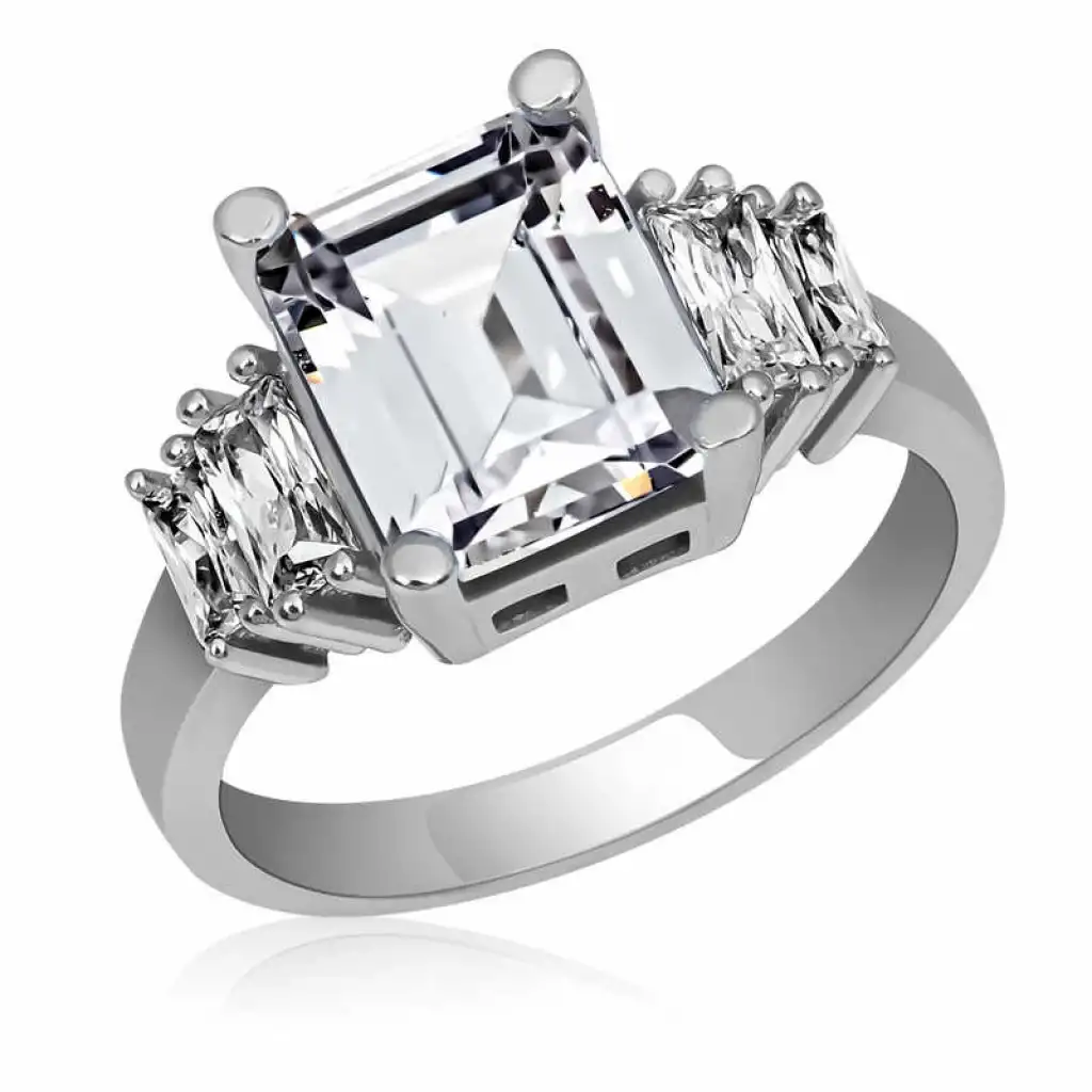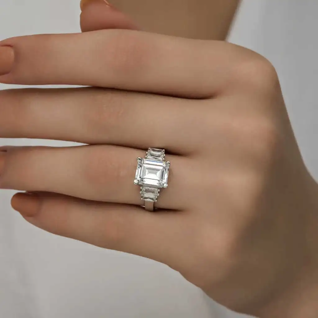 Gümüş Beyaz Baget Taşlı Bayan Yüzük