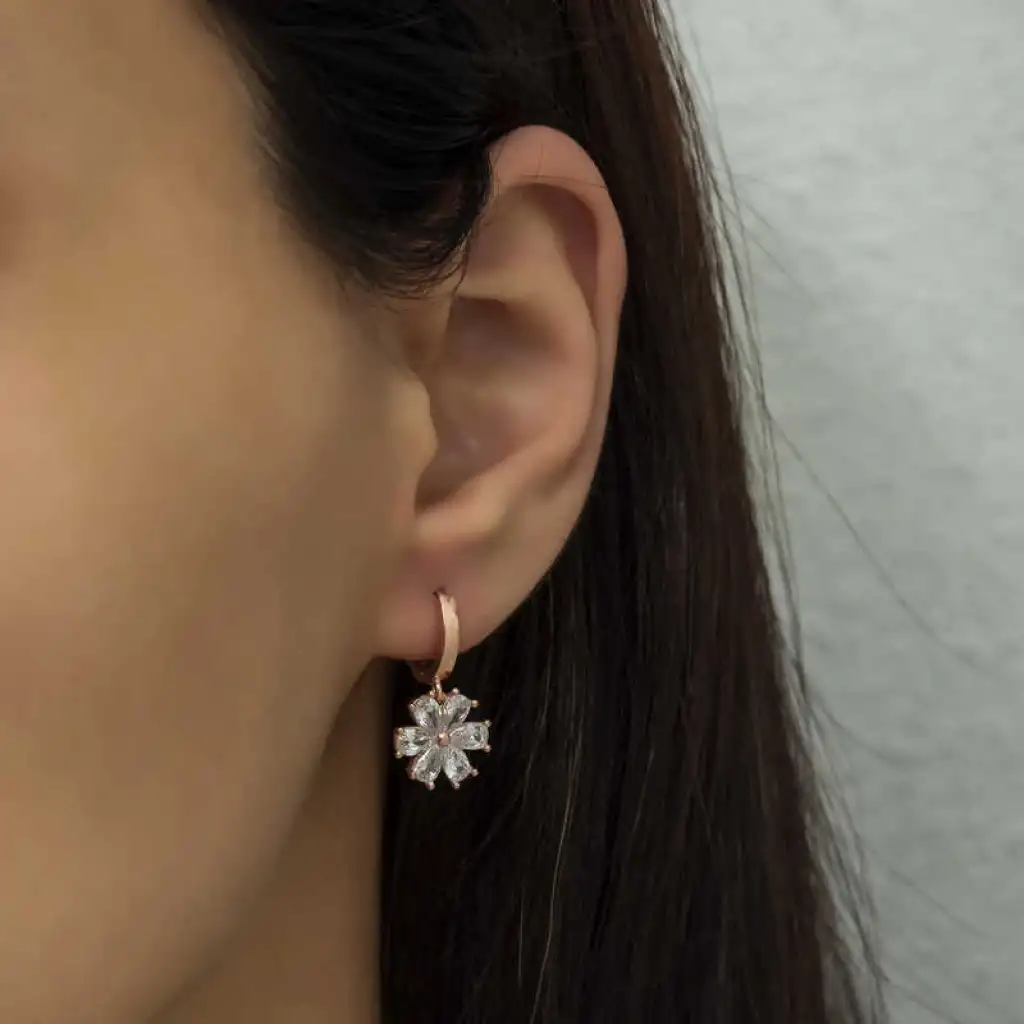 Sevdiklerinize duygularınızı ifade etmenin yolu neden çiçek desenli zarif bir küpe olmasın? Özel zamanlarda O’na gönderebileceğiniz, hediye seçenekleri arasında yer alan bu şık küpe sevdiklerinizi sevindirmenin en güzel yolları arasında yer almaktadır. En kaliteli, en ışıltılı taşlarla hazırlanmış gümüş beyaz çiçek bayan küpe; sevgisini bir kez daha anlatmak isteyenleri, sen bir çiçeksin demek isteyenleri bekliyor. Bu özel tasarım gümüş beyaz çiçek bayan küpe 925 ayar gümüşten imal edilmiştir. Gümüş üzerine rose kaplama yapılmıştır. Rose kaplama yapılan gümüş bayan küpe modelleri parlaklığını uzun süre muhafaza eder ve oksitlenmesi gecikir. Tüm bayan gümüş küpe modellerinde olduğu gibi gümüş beyaz çiçek bayan küpe de el emeği ile üretilmiştir. Gümüş ve değerli taşlar nedeniyle belirtilen ürün ağırlığında ± %10 sapma olabilmektedir.