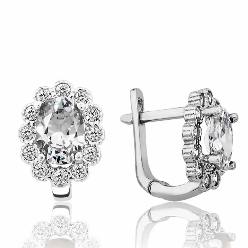 Gümüş Beyaz Çiçek Desenli J Kadın Küpe