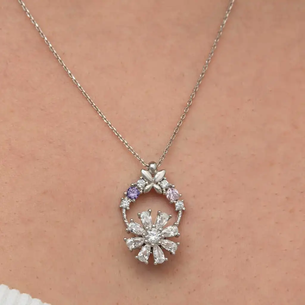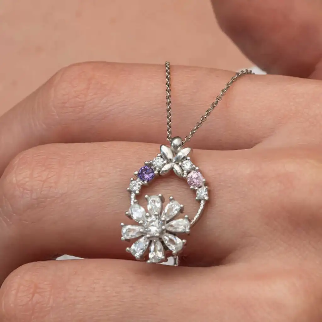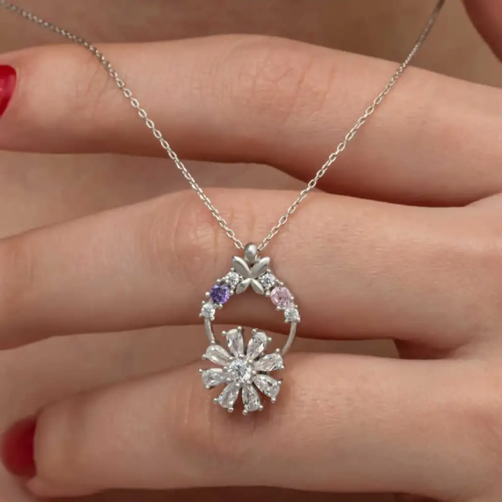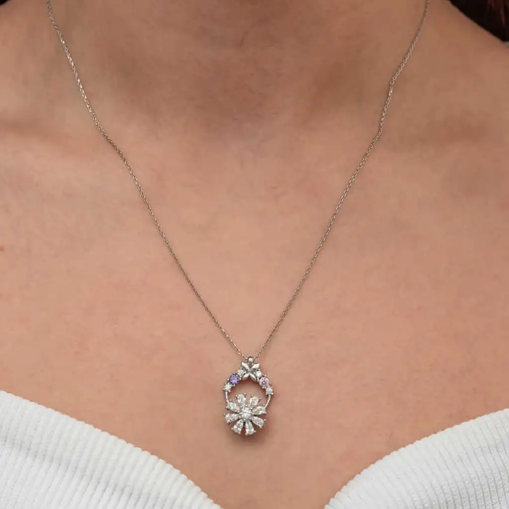 Gümüş Beyaz Dönen Çiçek Kadın Kolye