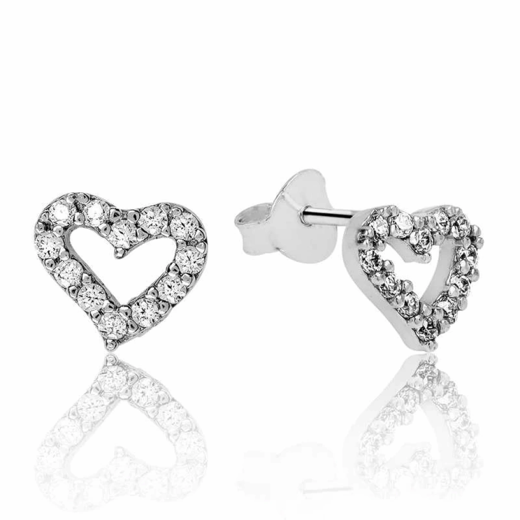 Gümüş Beyaz Kalpli Çivili Küpe