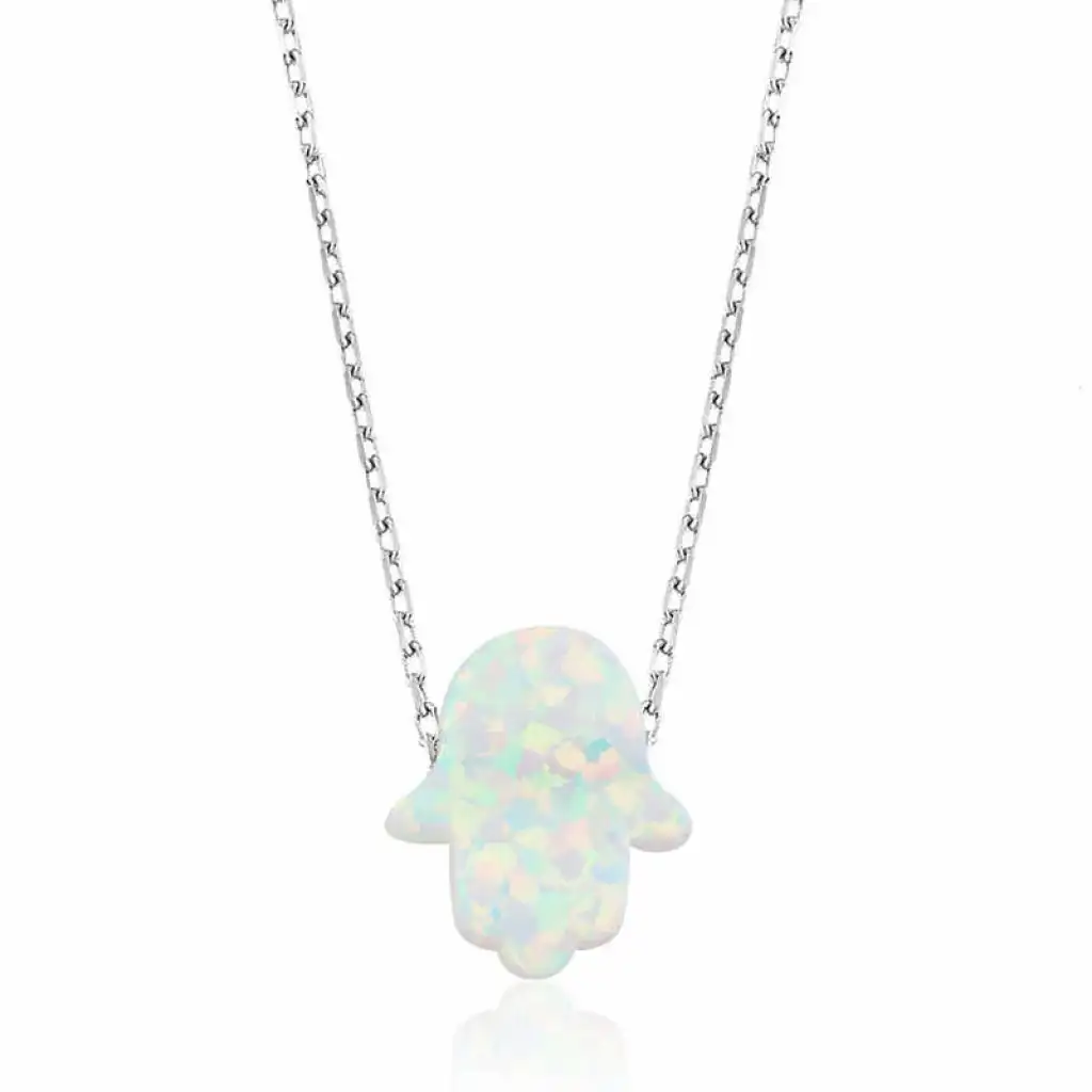 Gümüş Beyaz Opal Fatma Eli Bayan Kolye