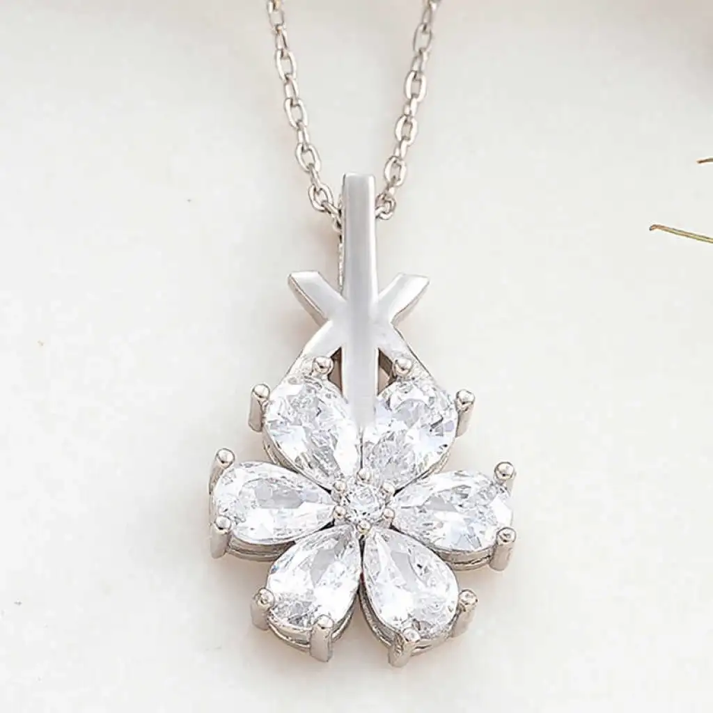 Gümüş Beyaz Sevgi Çiçeği Kadın Kolye