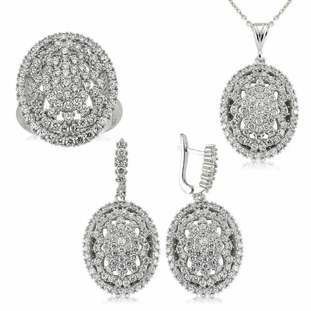 Gündelik hayatta ve özel günler de tercih edebileceğiniz ışıl ışıl taşları ile yıldızları anımsatan bu seti severek kullanacaksınız. Şık bir görünüm yakalamak isteyen tüm bayanlara hitap eden, modası geçmeyecek olan gümüş set sizleri bekliyor.Gümüş Beyaz Taşlı Bayan Seti; doğum günü hediyesi, sevgililer günü hediyesi veya annelere hediye olarak özel günlerde tercih edilebilecek mükemmel bir seçenektir. Gümüş beyaz taşlı bayan Set 925 ayar gümüşten imal edilmiştir. Gümüş üzerine rodyum kaplama yapılmıştır. Rodyum kaplama yapılan gümüş beyaz taşlı bayan set parlaklığını uzun süre muhafaza eder ve oksitlenmesi gecikir. Gümüş olan zincir boyu ortalama 45 cm'dir. Tüm bayan set modellerinde olduğu gibi gümüş beyaz taşlı bayan set modeli de el emeği ile üretilmiştir. Gümüş ve değerli taşlar nedeniyle belirtilen ortalama ürün ağırlığında ± %10 sapma olabilmektedir.