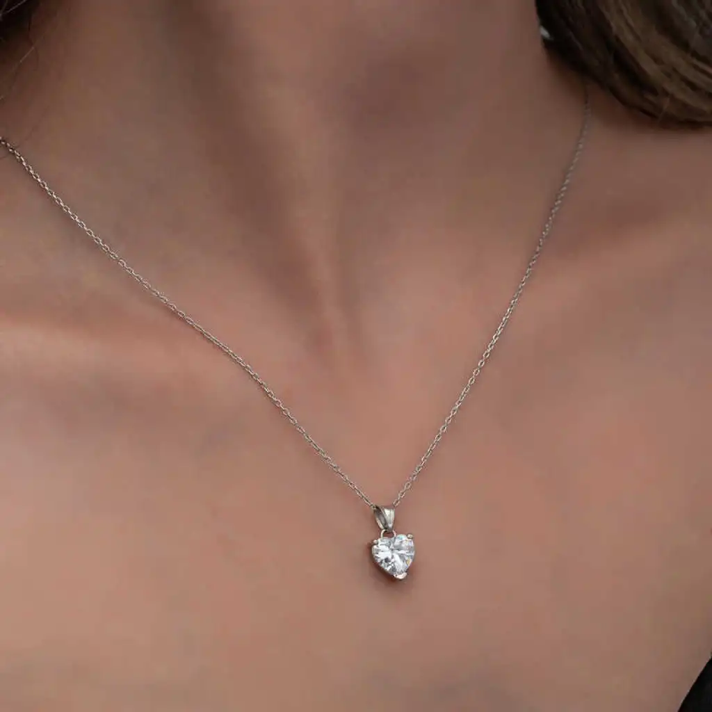 Gümüş Beyaz Taşlı Kalpli Kadın Kolye