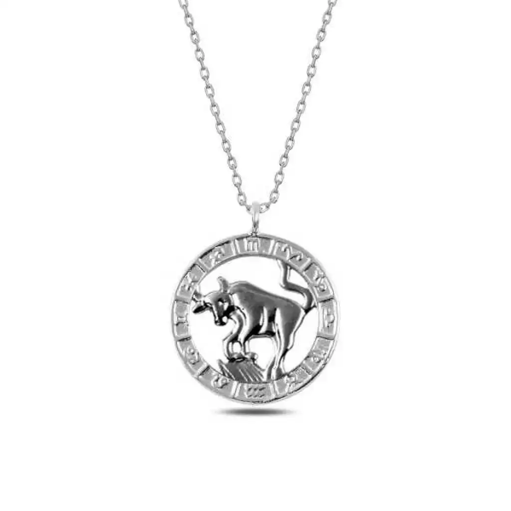 Astroloji ile yakından ilgilenenleri bu sezonda da en çok tercih edilen burç koleksiyonu ile tanıştırıyoruz. Modern stilin adeta aynası haline gelen birbirinden şık kolyeler, bu sezon da Zodyak üzerinde bulunan 12 takım yıldızının yansıması ile oluştu. Her burca özgü şans getiren özel tasarımlarla bir araya getirilmiş 12 farklı kolye çeşidi; astrolojinin gücüne inanların en iddialı aksesuar parçalarına dönüşecek. Hem şık hem de özel bir parça olan burç koleksiyonunda yer alan kolye modelleri ile ister kendinizi, ister sevdiklerinizi şımartabilirsiniz. Sevdiklerinize güven ve şans dileklerinizi sunmanıza yardımcı olan ve en güzel hediyenizi simgeleyen kolye modelleri ile tanışmak için siz de burç koleksiyonu ile tanışmak için acele edin. Boğa, (Latince: Taurus, boğa) burçlar kuşağının takımyıldızlarından biridir. Batısında Koç, doğusunda İkizler takım yıldızının arasında yer alır. Boğa burcu kolye, 925 ayar gümüşten imal edilmiştir. Gümüş üzerine rodyum kaplama yapılmıştır. Rodyum kaplama yapılan gümüş kolyeler parlaklığını uzun süre muhafaza eder. Tüm bayan gümüş ürünlerde olduğu gibi gümüş boğa burcu kolye de el emeği ile üretilmiştir. Gümüş ve değerli taşlar nedeniyle belirtilen ortalama ürün ağırlığında ± %10 sapma olabilmektedir.