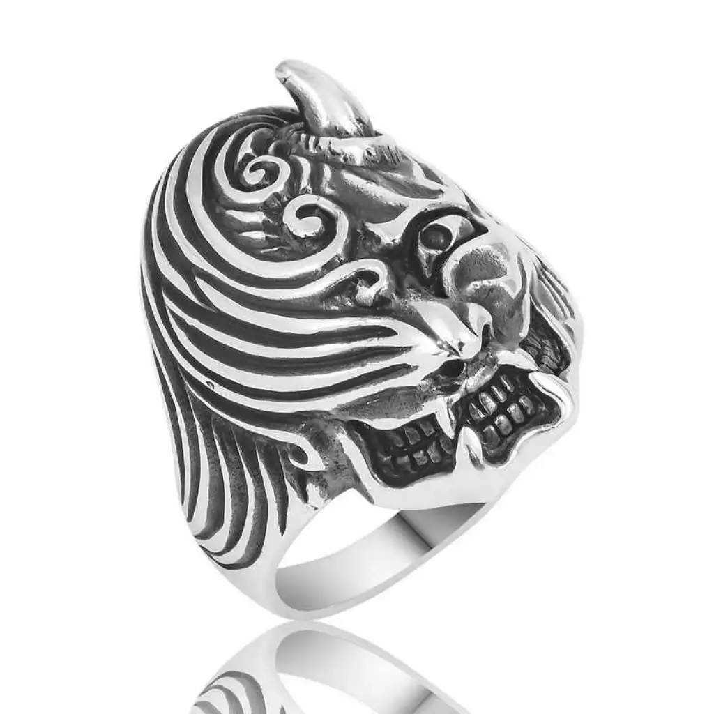 Gümüş Boynuzlu Kafa Erkek Yüzük