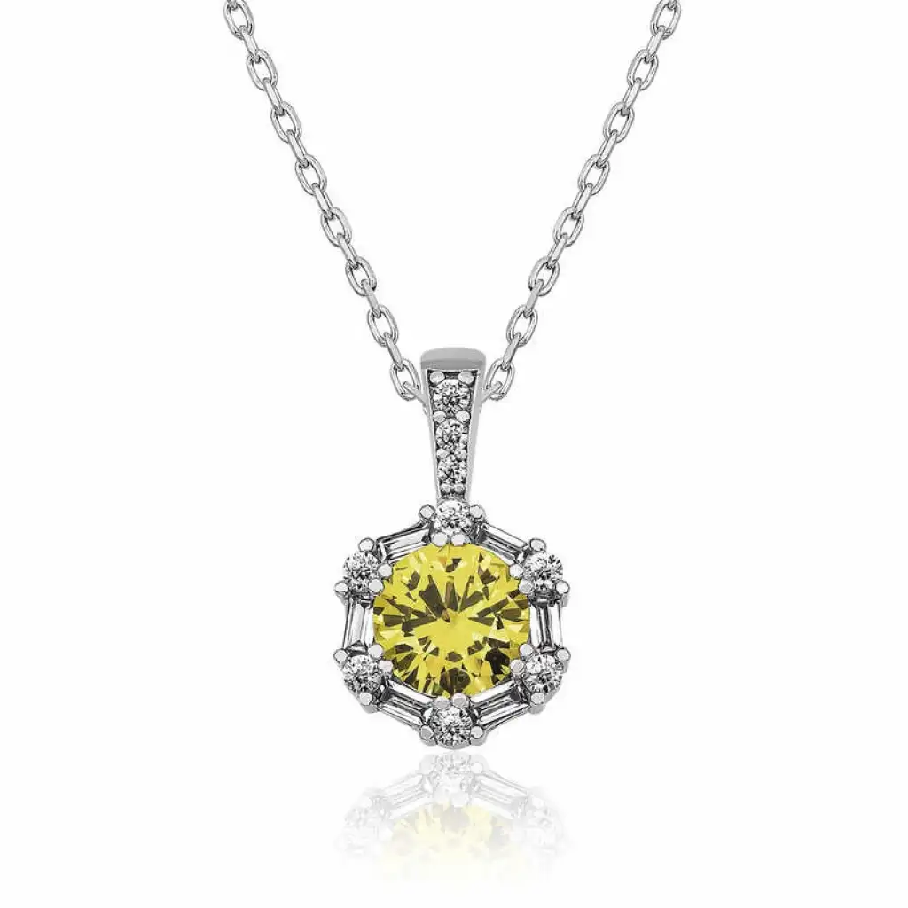 Gümüş Buğday Sarısı Baget Taşlı Bayan Kolye