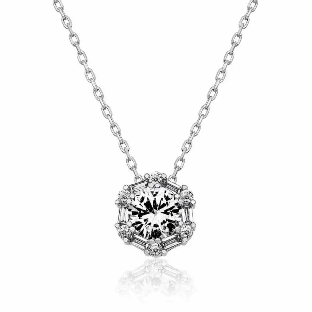 Gümüş Buz Beyazı Baget Taşlı Bayan Kolye