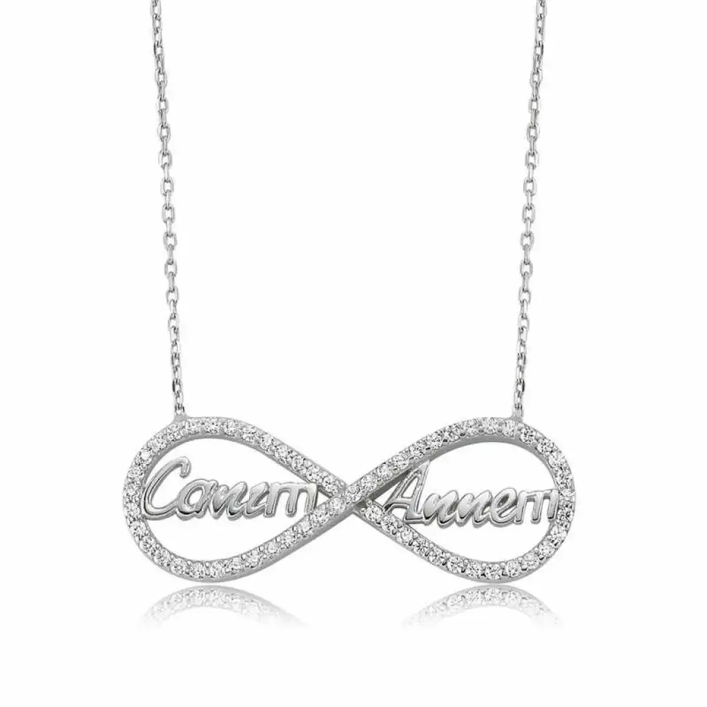 Gümüş Canım Annem Yazılı Sonsuzluk Bayan Kolye