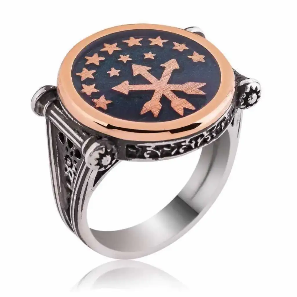 Bugün Çerkes olarak tanımlanan Kafkasyalı göçmenlerin derin bir tarihi ve kültürel değerleri vardır. Bu değerleri ve asil bayrakları sizler için yüzüğe yansıttık. Bu şık erkek yüzük modeli, doğum günü hediyesi, babalar günü veya özel günlerde tercih edilebilecek mükemmel bir seçenektir. 925 ayar gümüş ve bronzdan imal edilmiştir. Gümüş üzerine oksit kaplama yapılmıştır. Tüm gümüş erkek yüzüklerinde olduğu gibi gümüş Çerkes bayrağı erkek yüzük modeli de tamamen el emeği ile üretilmiştir. Gümüş ve değerli taşlar nedeniyle belirtilen ortalama ürün ağırlığında ± %10 sapma olabilmektedir.