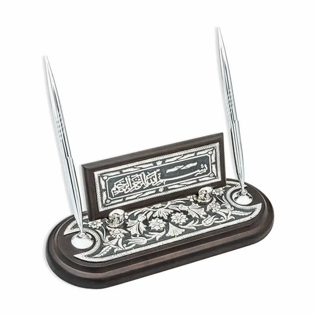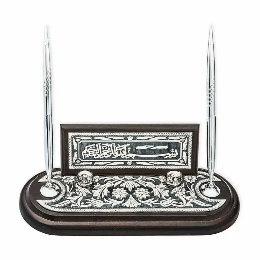 Gümüş Çiçek Desenli Besmele Masa Üstü Kalemlik