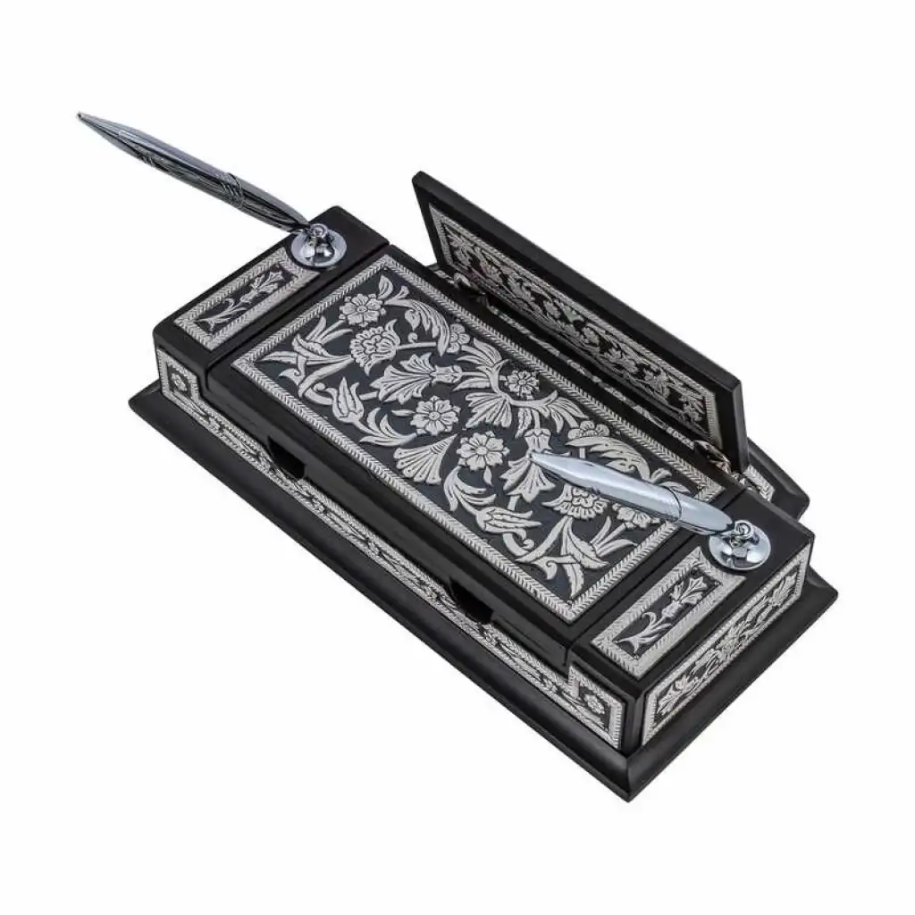 Gümüş Çiçek Desenli Besmele Masa Üstü Kalemlik