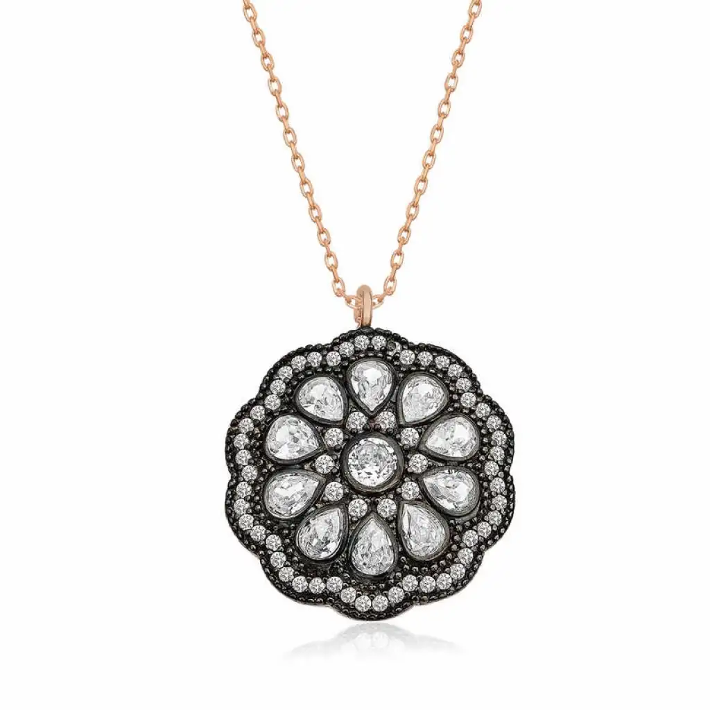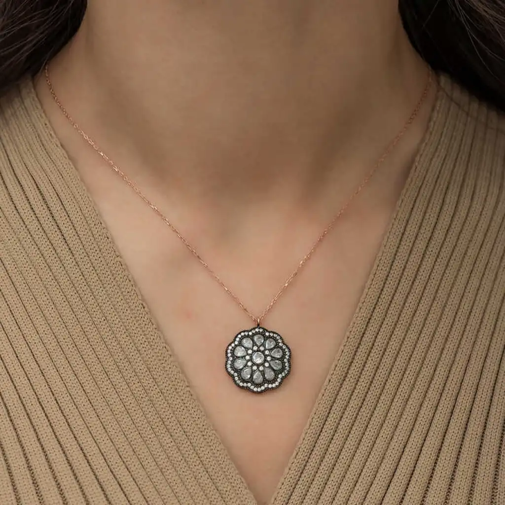 Gümüş Elmas Montür Çiçek Bayan Kolye