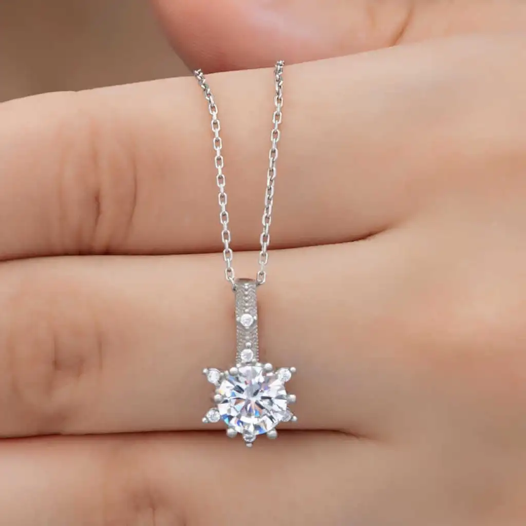 Özel günlerde kadınların tercihleri arasında ilk sıralarda yer alan kolyeler pek çok kadının kurtarıcısıdır. Spor ve klasik her kıyafetle kombinleyebileceğiniz çiçek desenli kolye, çok uygun fiyatla karşınızda. Zarif çiçek motifi üzerine işlenen küçük beyaz zirkon taşlarla desteklenmiş bu modelle şıklığınızı tamamlayabilirsiniz. Bu kolye modeli 925 ayar gümüşten imal edilmiştir. Gümüş üzerine rodyum kaplama yapılmıştır. Rodyum kaplama yapılan gümüş kolye modelleri parlaklığını uzun süre muhafaza eder ve oksitlenmesi gecikir. Tüm gümüş kolyelerde olduğu gibi gümüş çiçek desenli kadın kolye modeli de tamamen el emeği ile üretilmiştir. Gümüş ve değerli taşlar nedeniyle belirtilen ortalama ürün ağırlığında ± %10 sapma olabilmektedir.