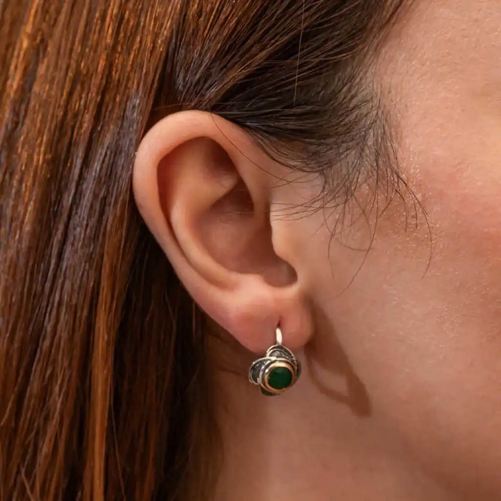 Yeşil taşlı çiçek desenli otantik küpe geleneksel ve modern tarzları bir araya getirerek stilinize ikonik bir dokunuş katıyor.Hem bohem hem de klasik stillerle mükemmel bir uyum sağlar.Doğum günü hediyesi, sevgililer günü hediyesi veya annelere hediye olarak özel günlerde tercih edilebilecek mükemmel bir seçenektir.Gümüş yeşil otantik küpe 925 ayar gümüşten imal edilmiştir. Gümüş üzerine rodyum kaplama yapılmıştır. Rodyum kaplama yapılan gümüş otantik kadın küpe parlaklığını uzun süre muhafaza eder ve oksitlenmesi gecikir. Tüm kadın küpelerde olduğu gibi gümüş otantik kadın küpe de el emeği ile üretilmiştir. Gümüş ve değerli taşlar nedeniyle belirtilen ortalama ürün ağırlığında ± %10 sapma olabilmektedir.
