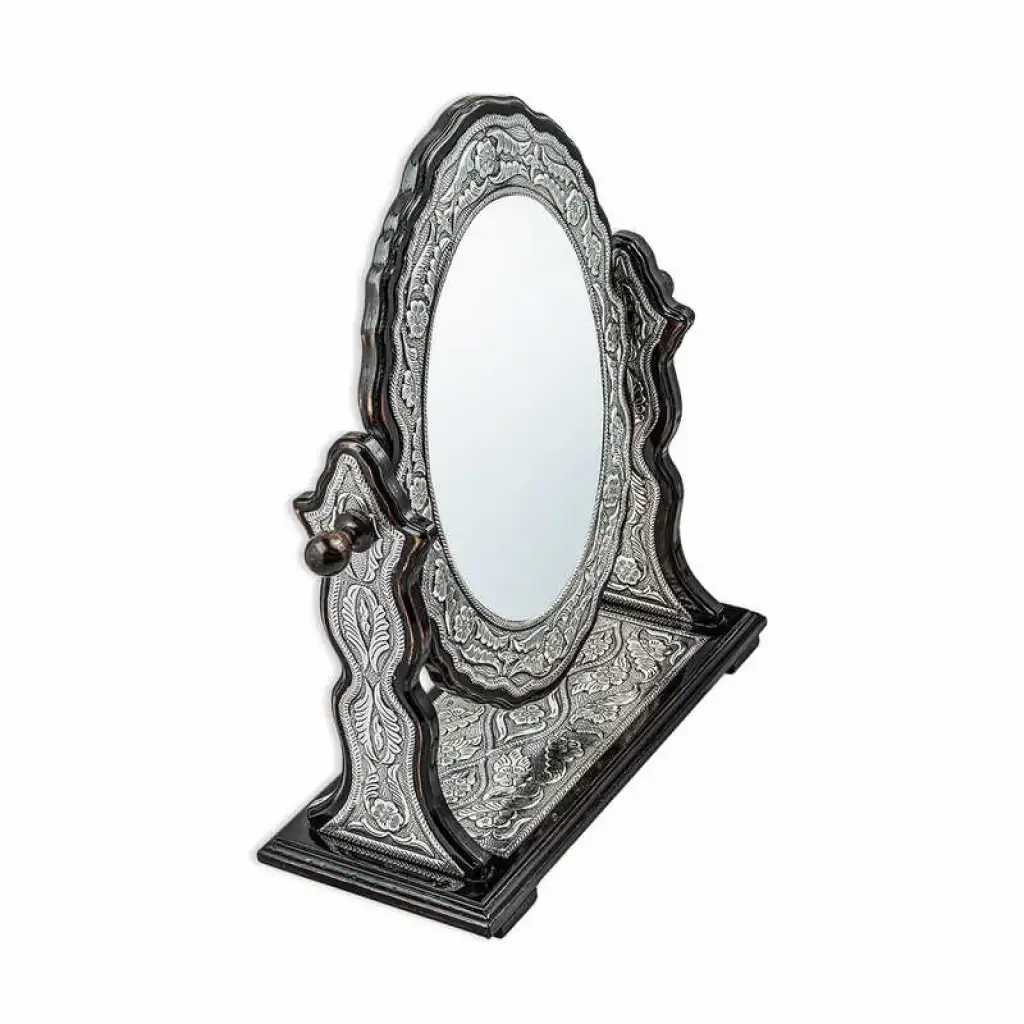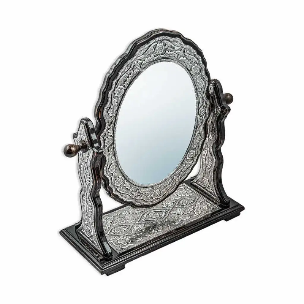 Gümüş Çiçek Desenli Oval Çift Taraflı Ayna