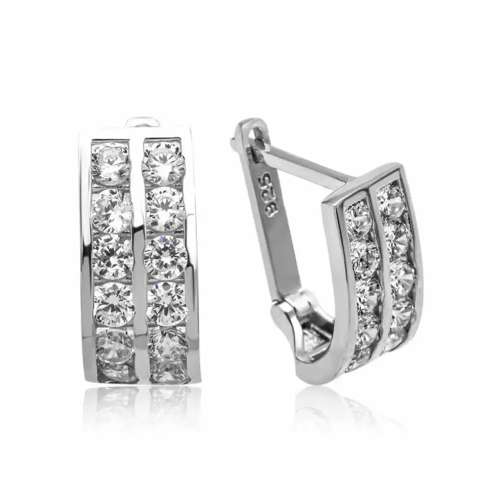 Gümüş Çift Sıra Beyaz Taşlı J Kadın Küpe